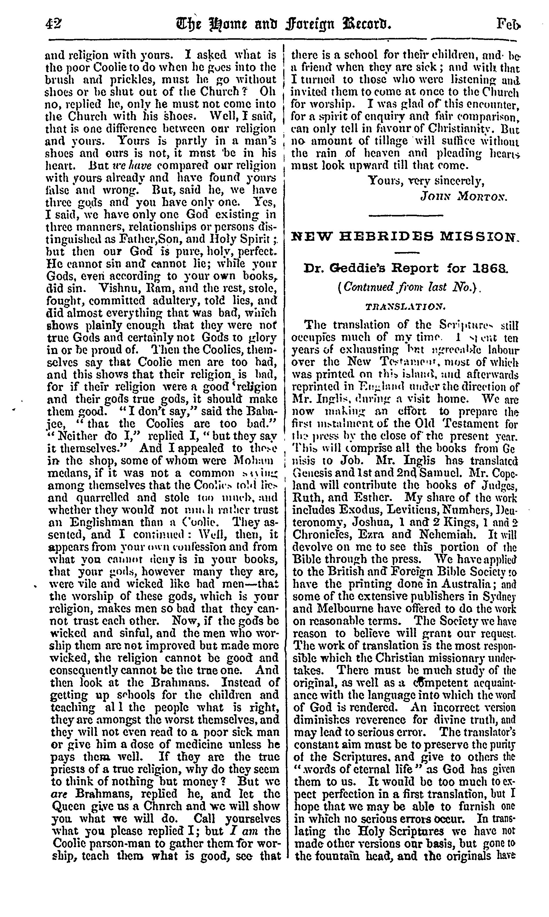 The home and foreign record of the Presbyterian Church of the Lower Provinces of British North America : [Vol. 10] (Feb. 1870)]