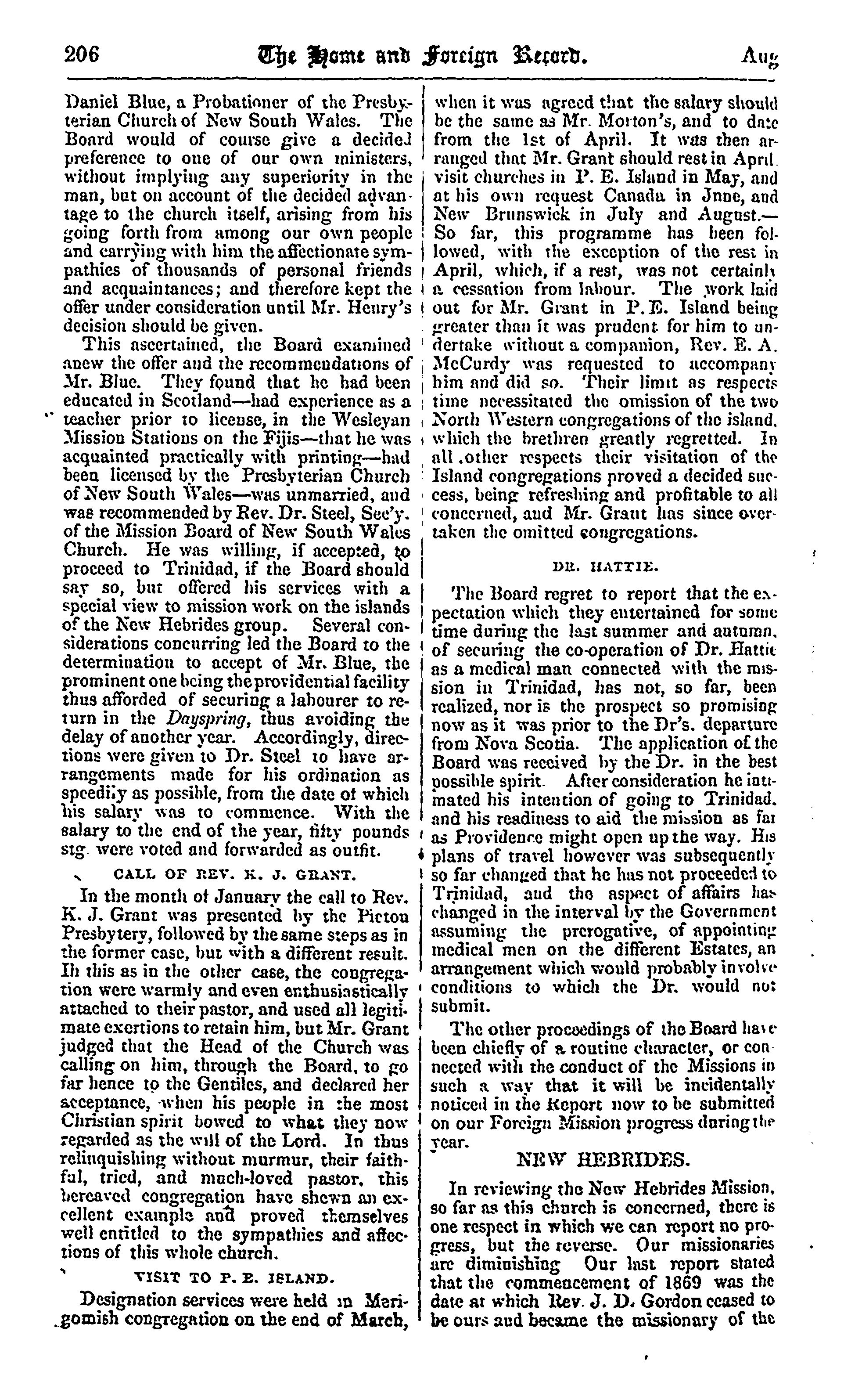- The home and foreign record of the Presbyterian Church of the Lower Provinces of British North America [Vol. 10] (Aug. 1870)]