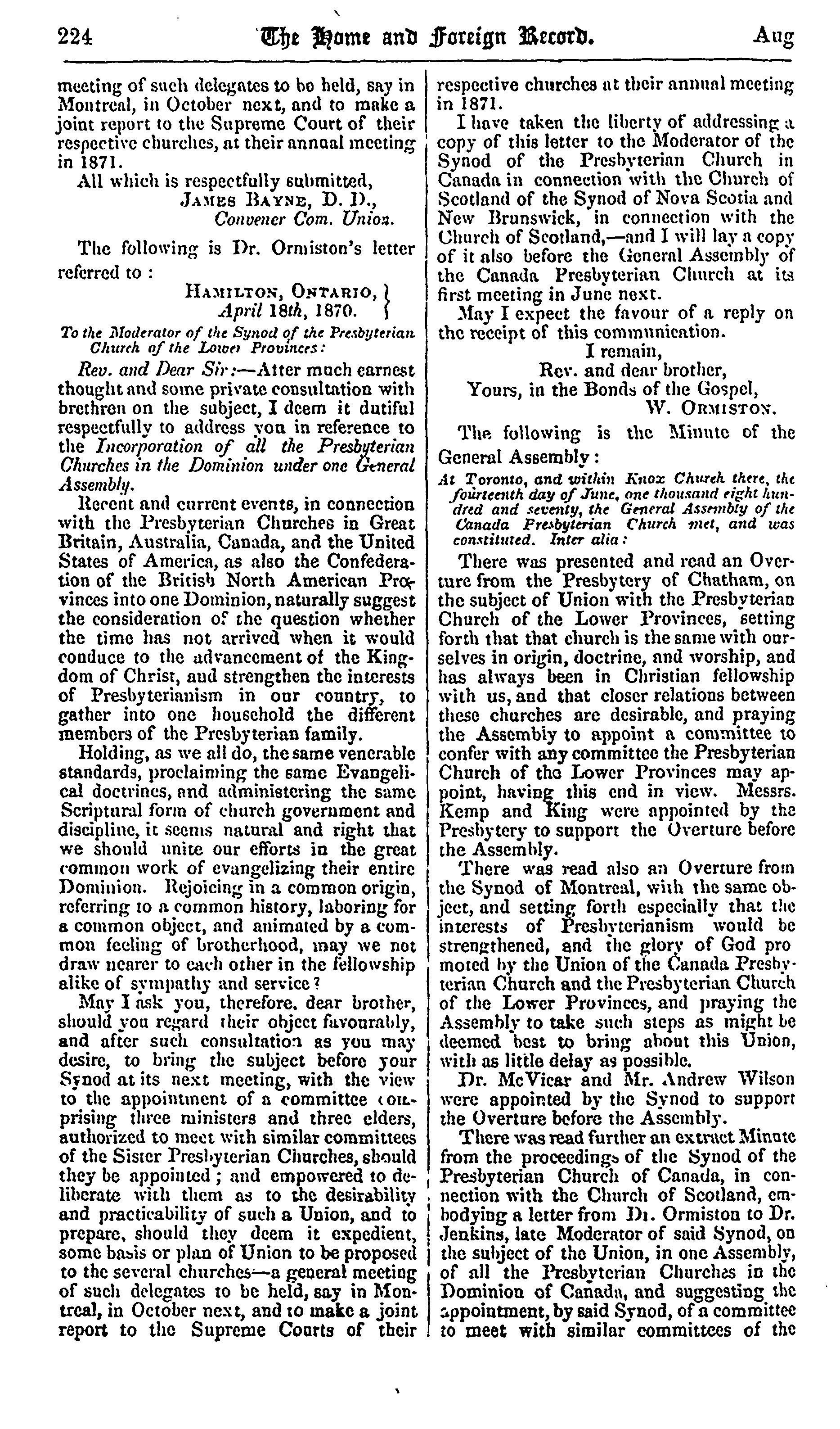 The home and foreign record of the Presbyterian Church of the Lower Provinces of British North America [Vol. 10] (Aug. 1870)]