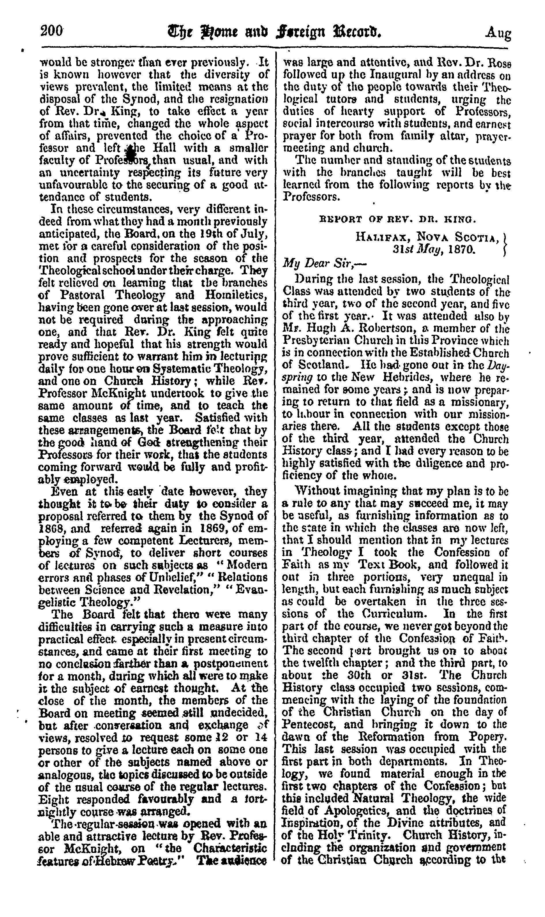 The home and foreign record of the Presbyterian Church of the Lower Provinces of British North America : [Vol. 10] (Aug. 1870)]