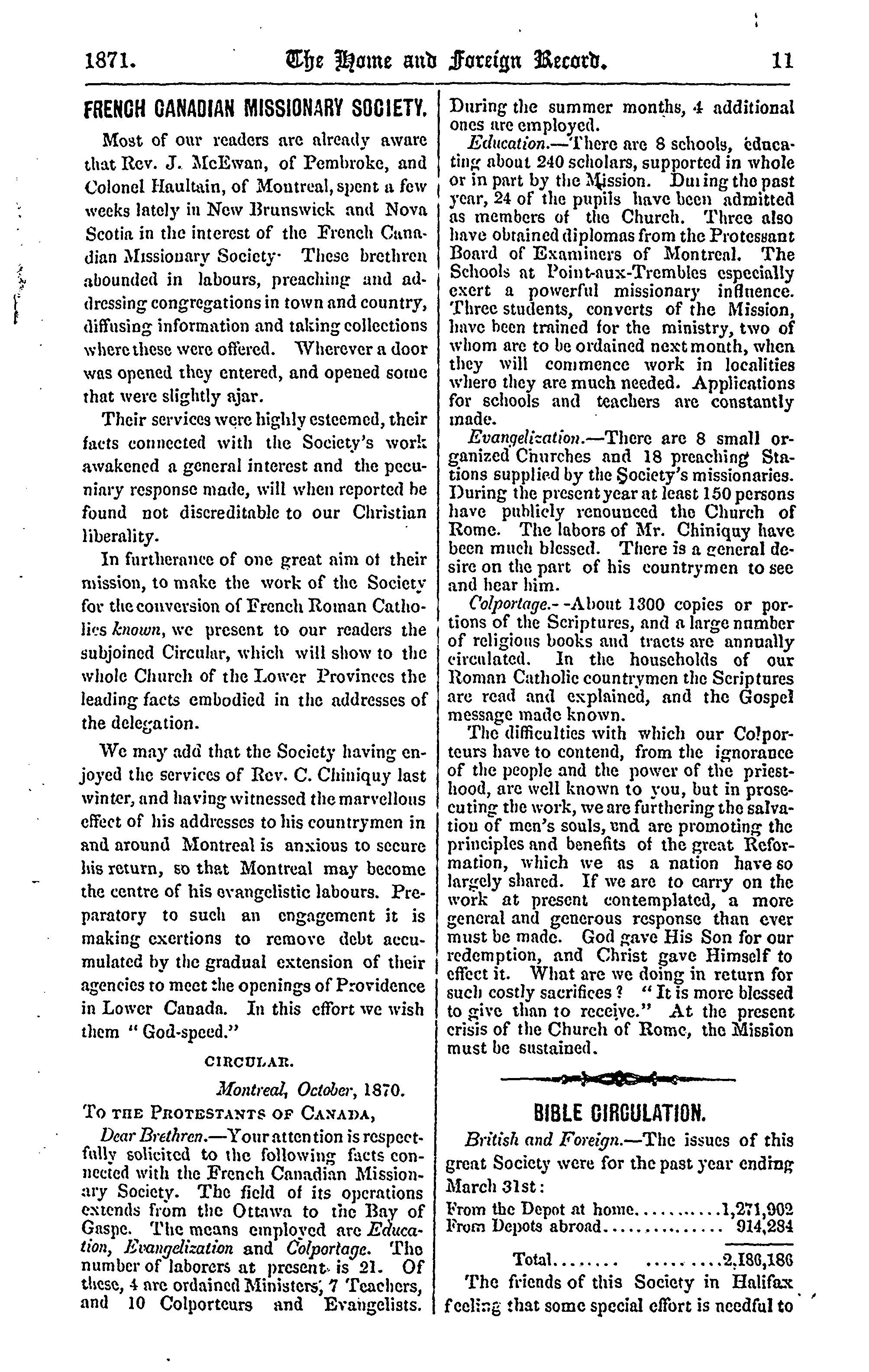 The home and foreign record of the Presbyterian Church of the Lower Provinces of British North America : [Vol. 11] (Jan. 1871)]
