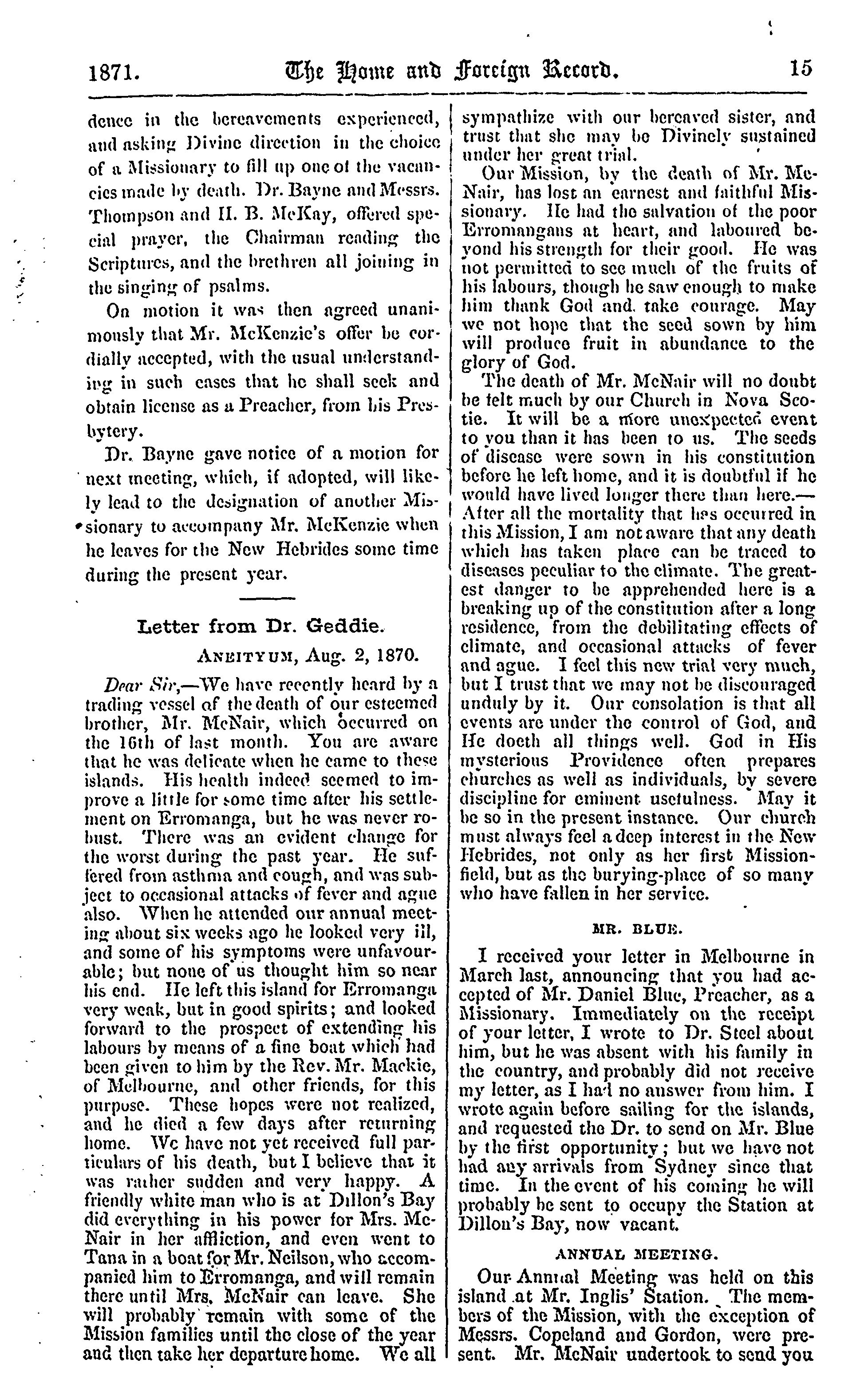 - The home and foreign record of the Presbyterian Church of the Lower Provinces of British North America [Vol. 11] (Jan. 1871)]