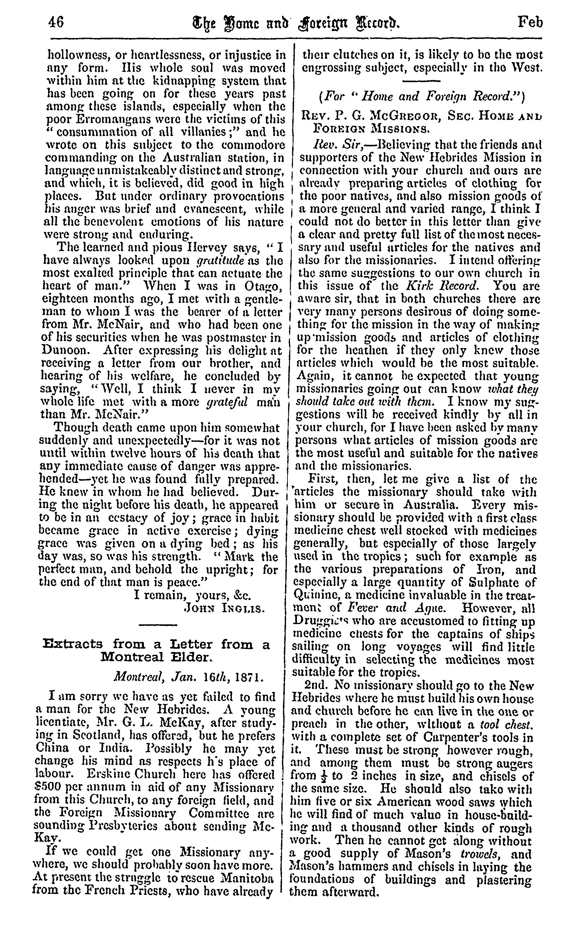 The home and foreign record of the Presbyterian Church of the Lower Provinces of British North America [Vol. 11] (Feb. 1871)]