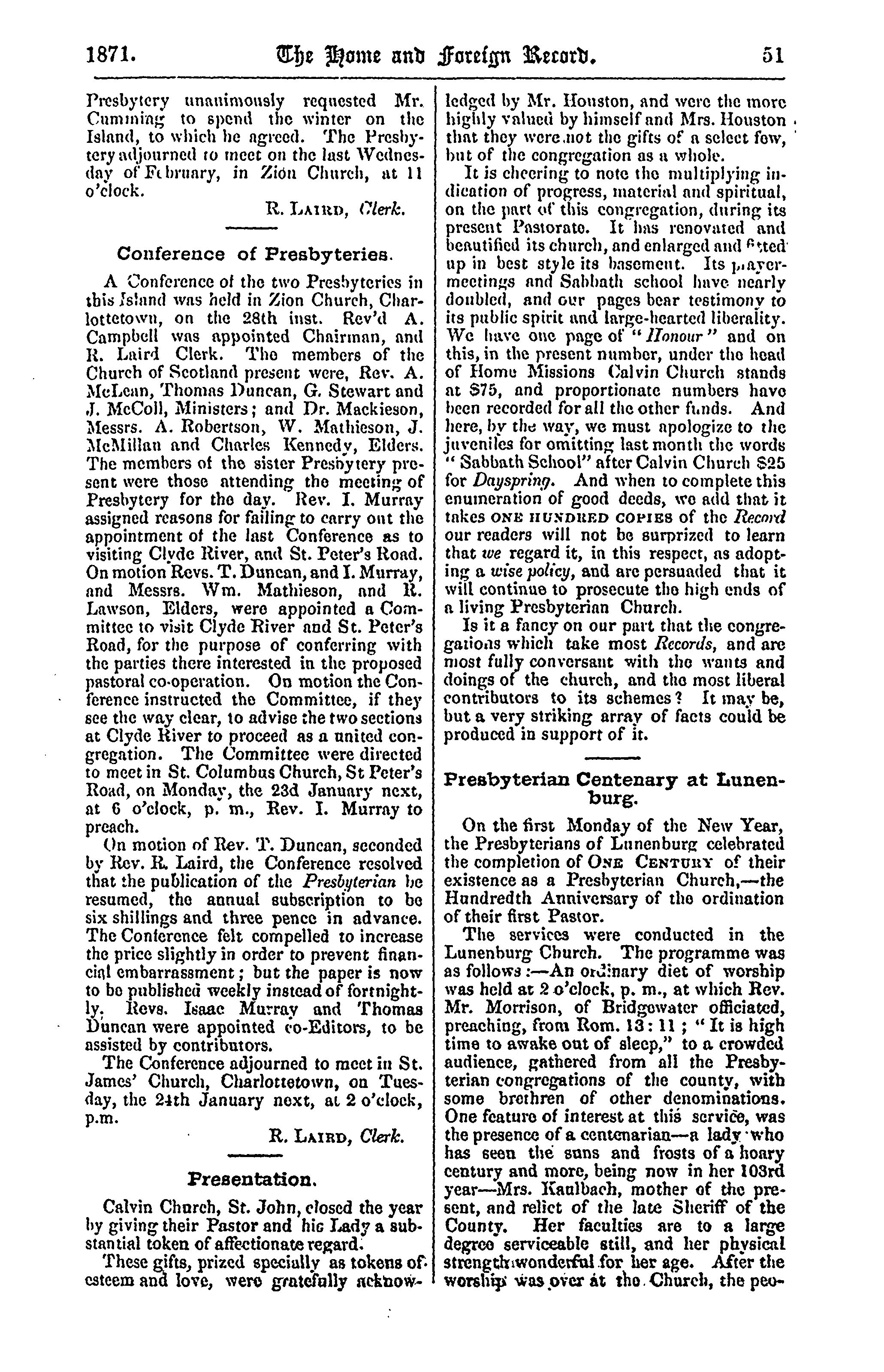 The home and foreign record of the Presbyterian Church of the Lower Provinces of British North America [Vol. 11] (Feb. 1871)]