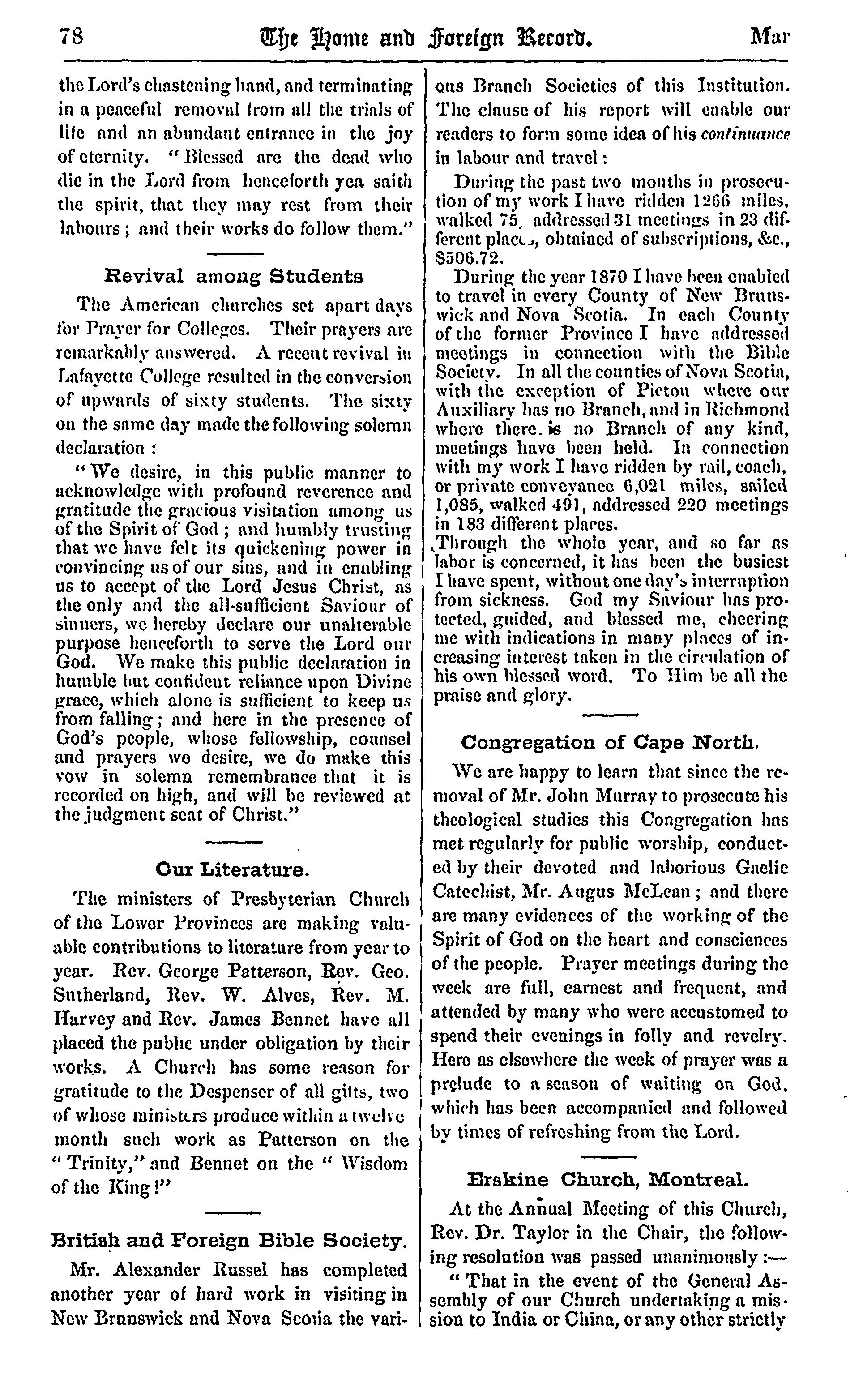- The home and foreign record of the Presbyterian Church of the Lower Provinces of British North America [Vol. 11] (Mar. 1871)]