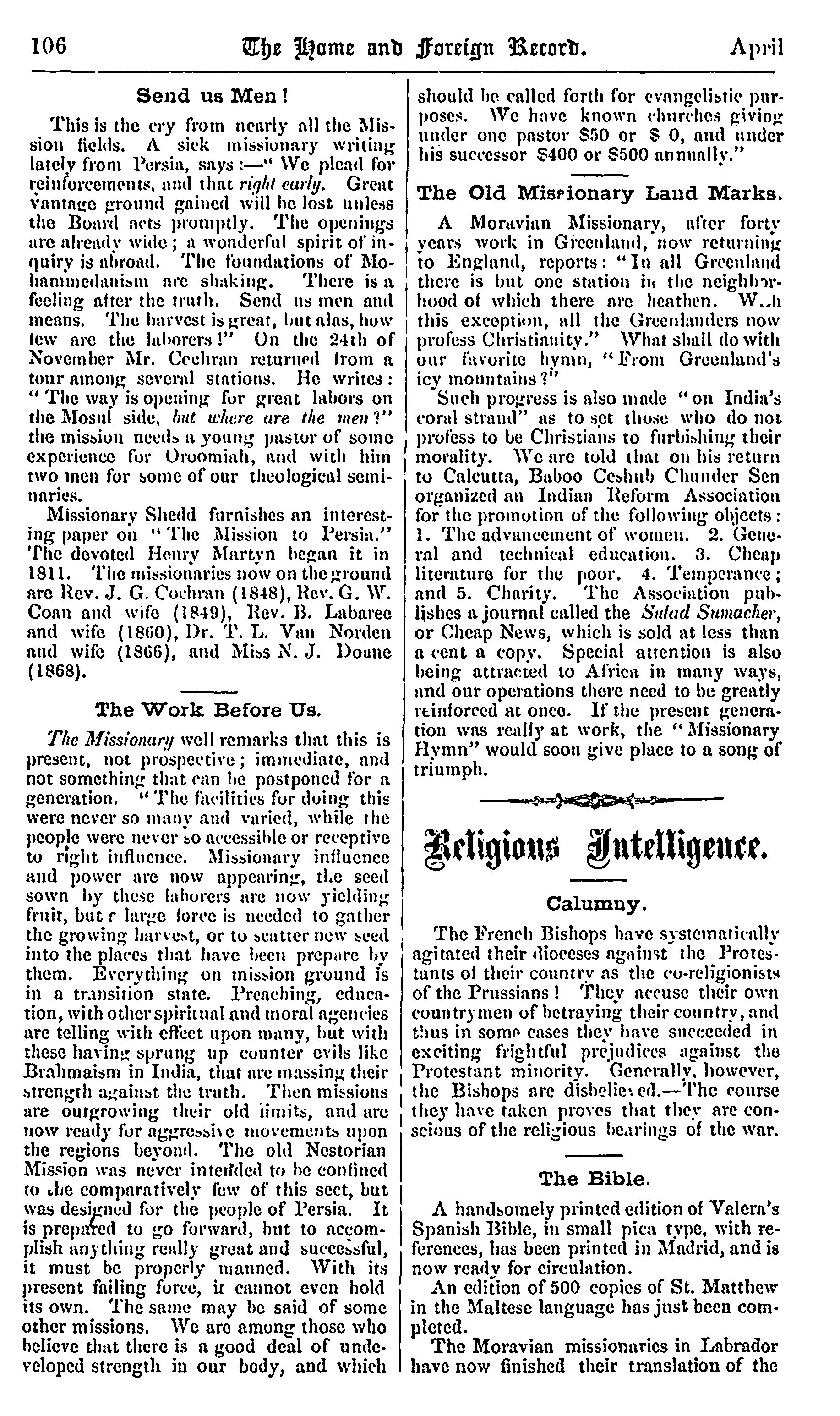 The home and foreign record of the Presbyterian Church of the Lower Provinces of British North America [Vol. 11] (Apr. 1871)]
