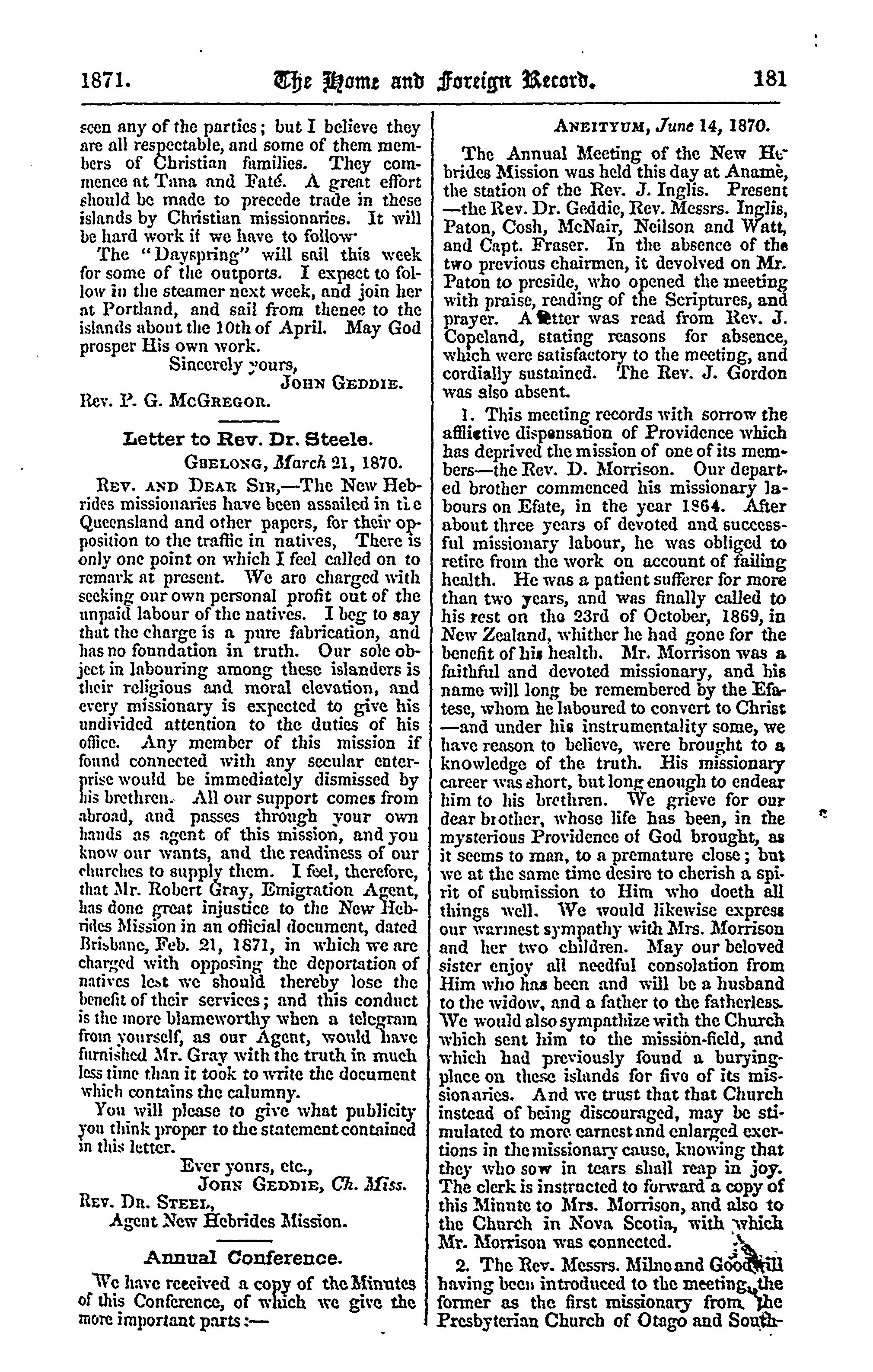 - The home and foreign record of the Presbyterian Church of the Lower Provinces of British North America [Vol. 11] (July 1871)]