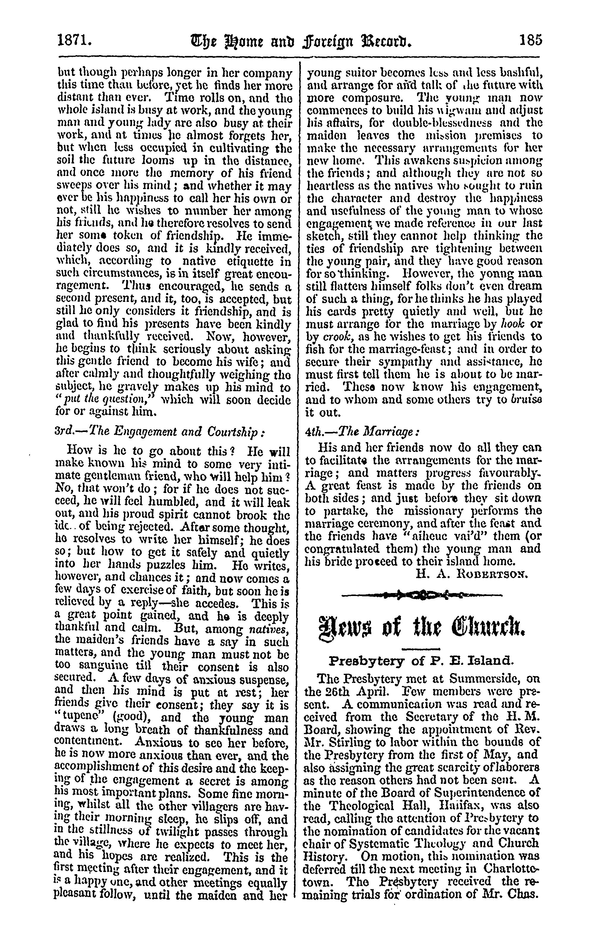 - The home and foreign record of the Presbyterian Church of the Lower Provinces of British North America [Vol. 11] (July 1871)]