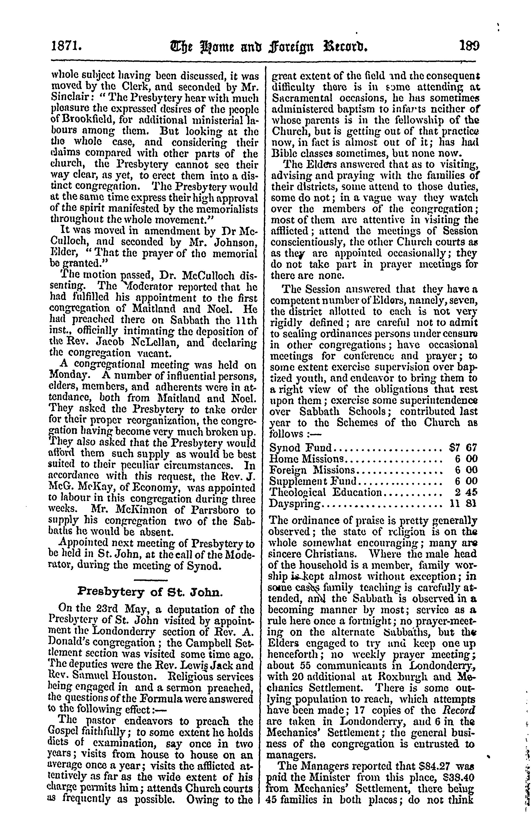 - The home and foreign record of the Presbyterian Church of the Lower Provinces of British North America [Vol. 11] (July 1871)]