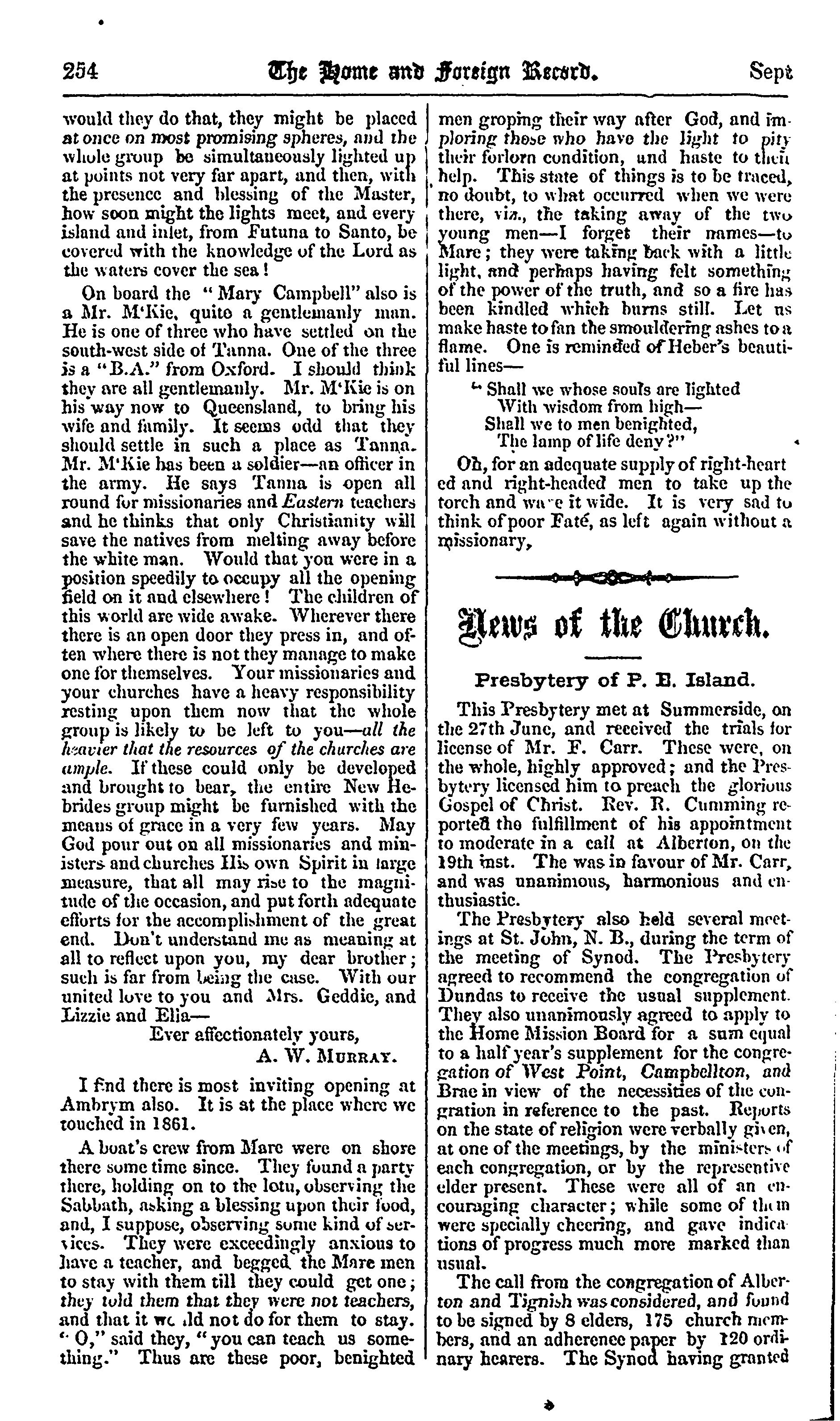 The home and foreign record of the Presbyterian Church of the Lower Provinces of British North America [Vol. 11] (Sept. 1871)]
