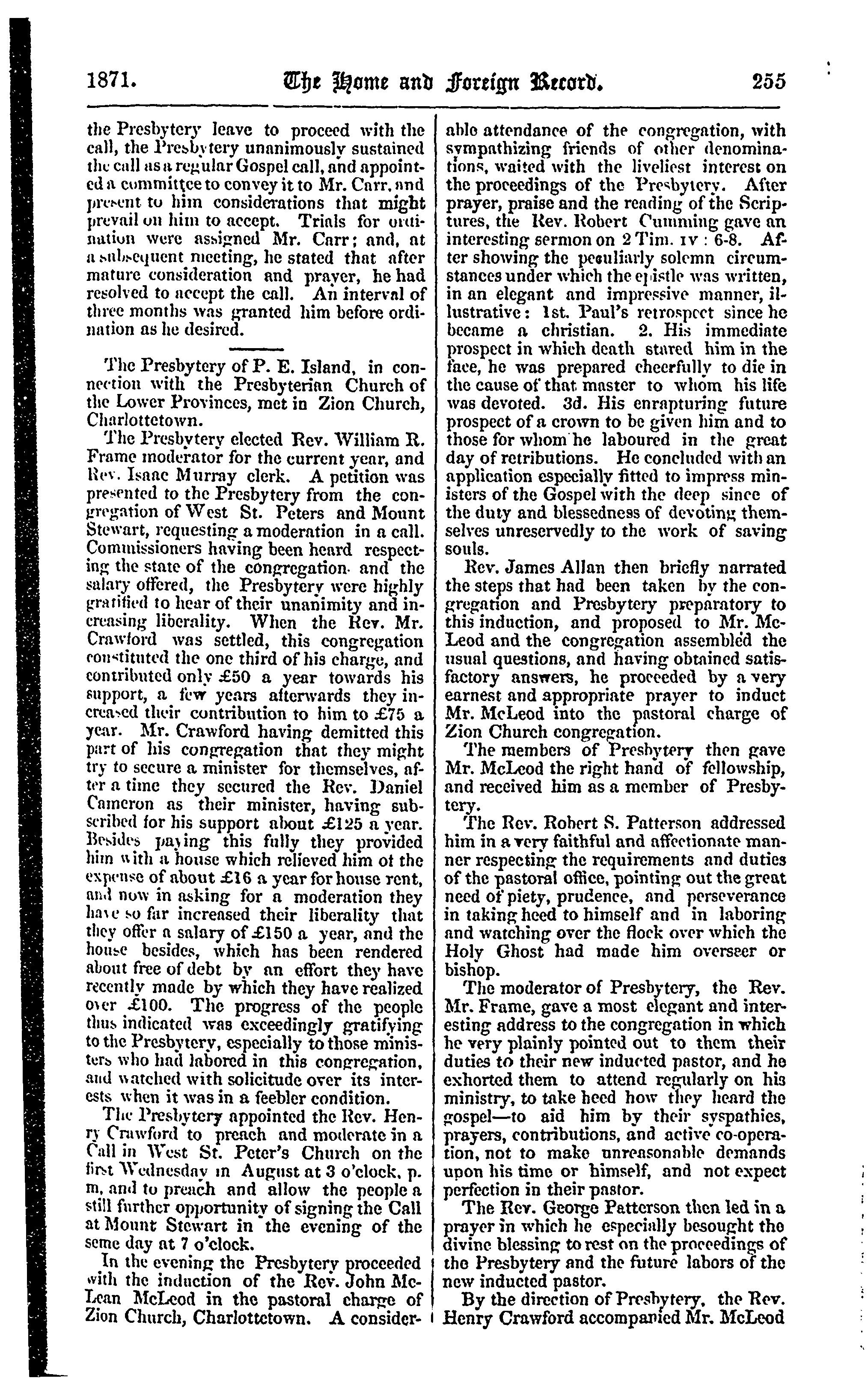 - The home and foreign record of the Presbyterian Church of the Lower Provinces of British North America [Vol. 11] (Sept. 1871)]