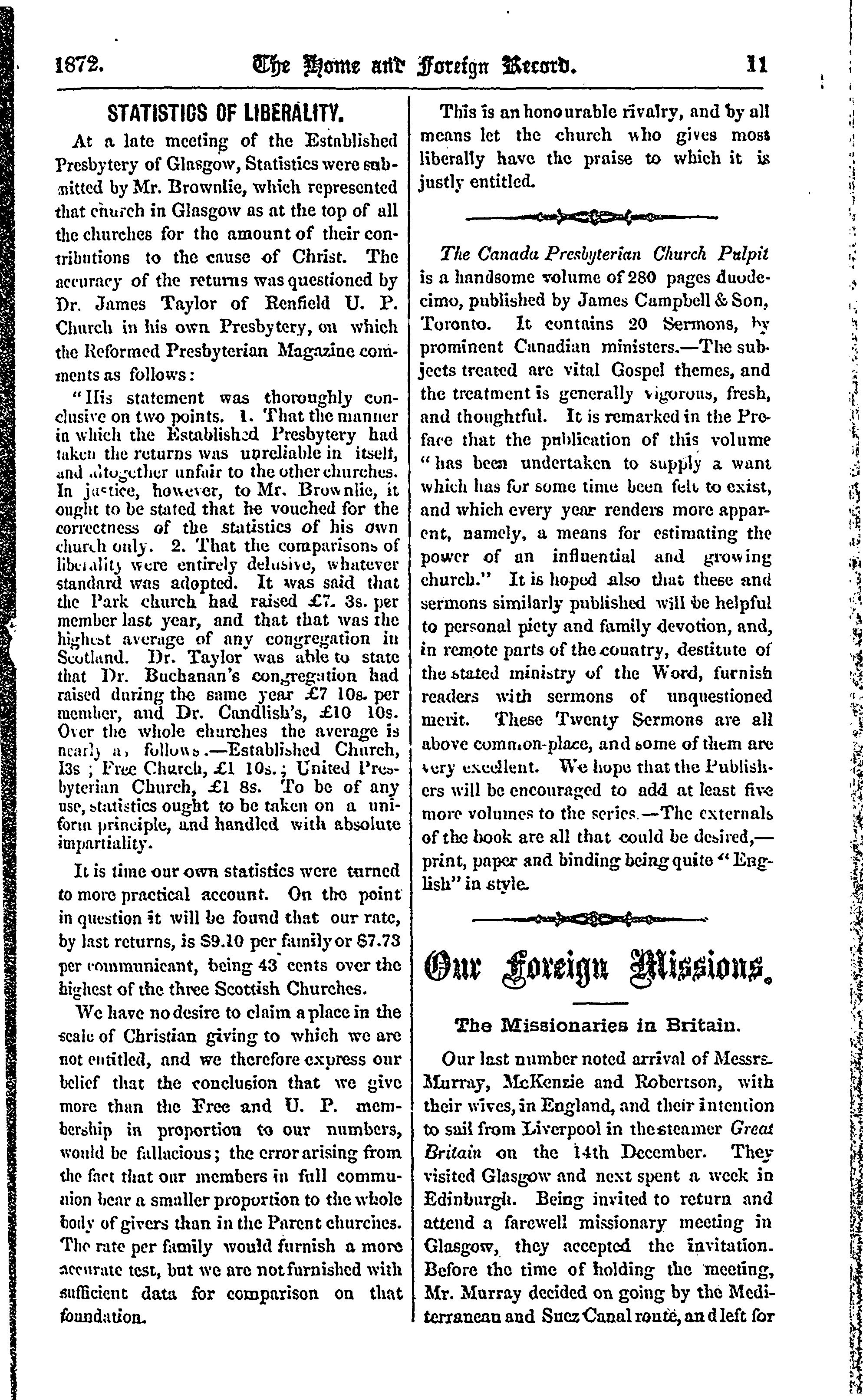 - The home and foreign record of the Presbyterian Church of the Lower Provinces of British North America [Vol. 12] (Jan. 1872)]