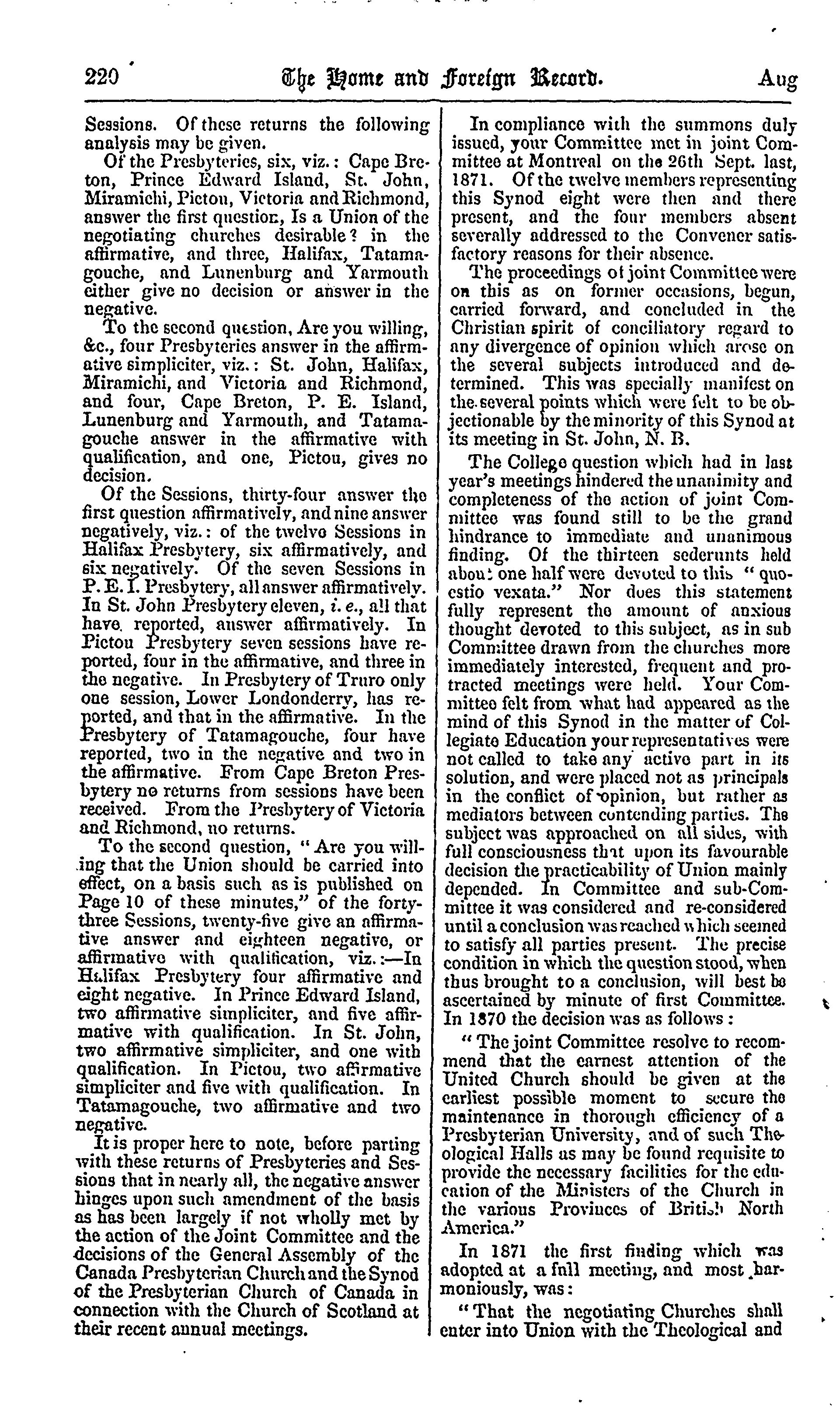- The home and foreign record of the Presbyterian Church of the Lower Provinces of British North America [Vol. 12] (Aug. 1872)]