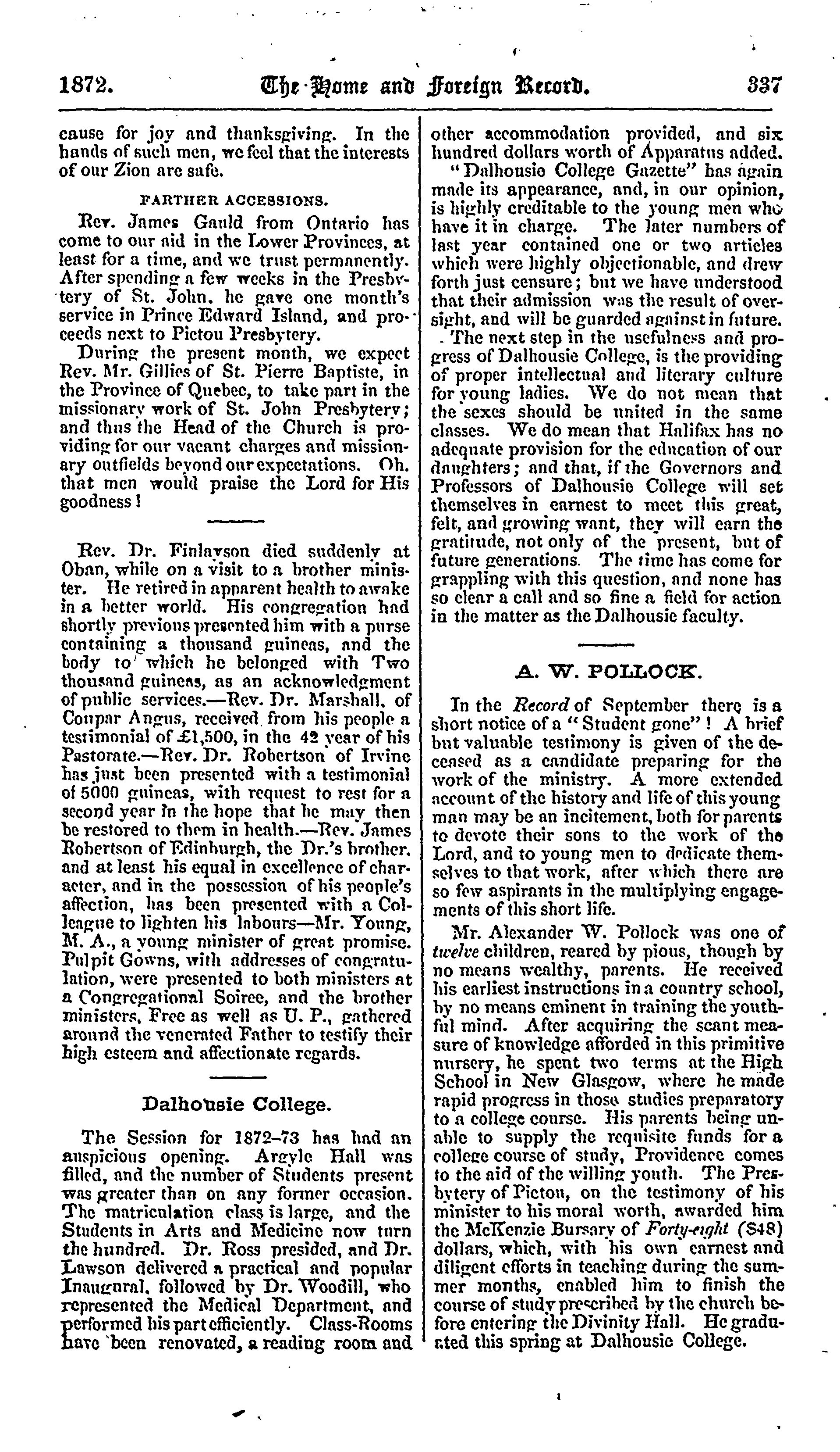 The home and foreign record of the Presbyterian Church of the Lower Provinces of British North America [Vol. 12] (Dec. 1872)]