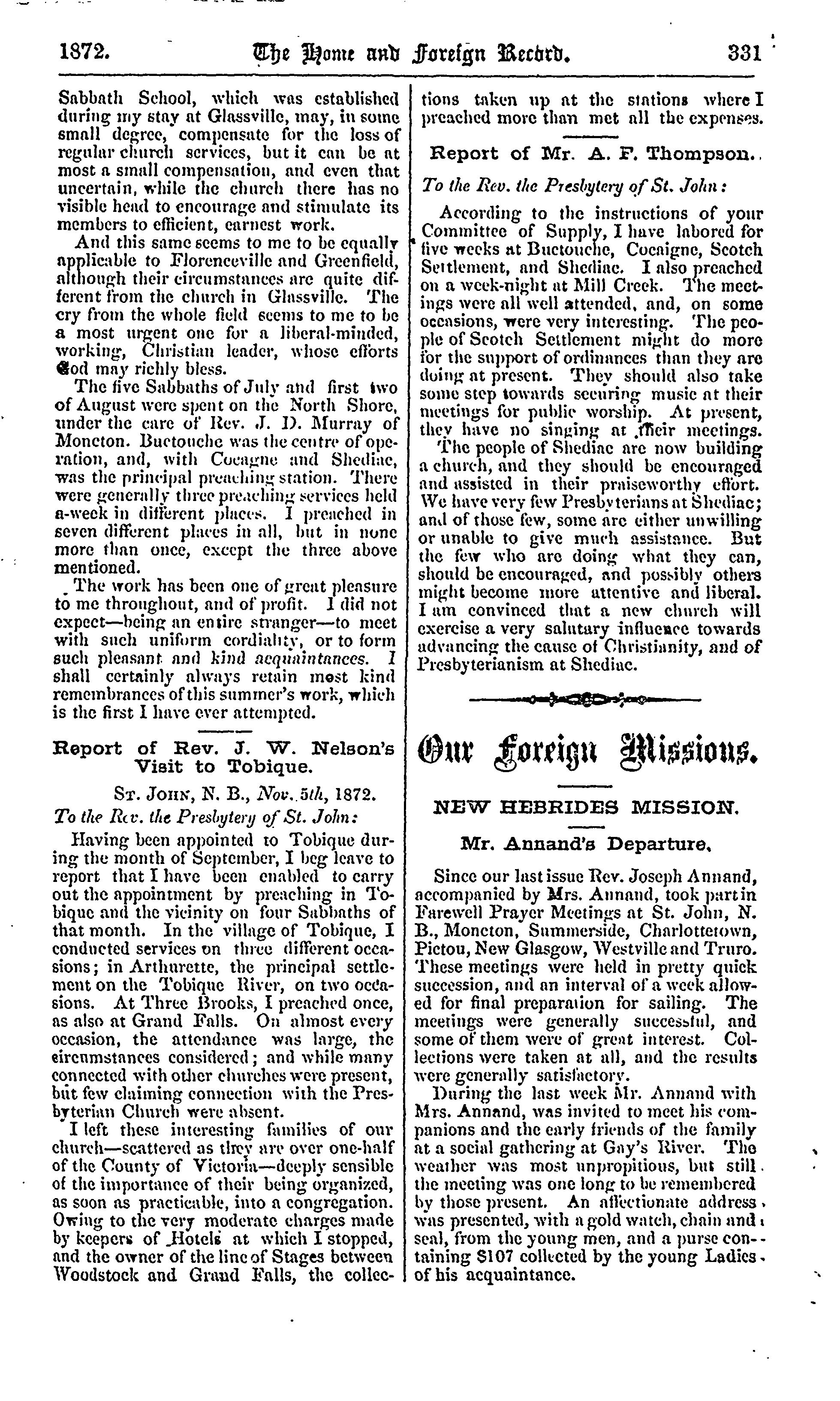 The home and foreign record of the Presbyterian Church of the Lower Provinces of British North America [Vol. 12] (Dec. 1872)]