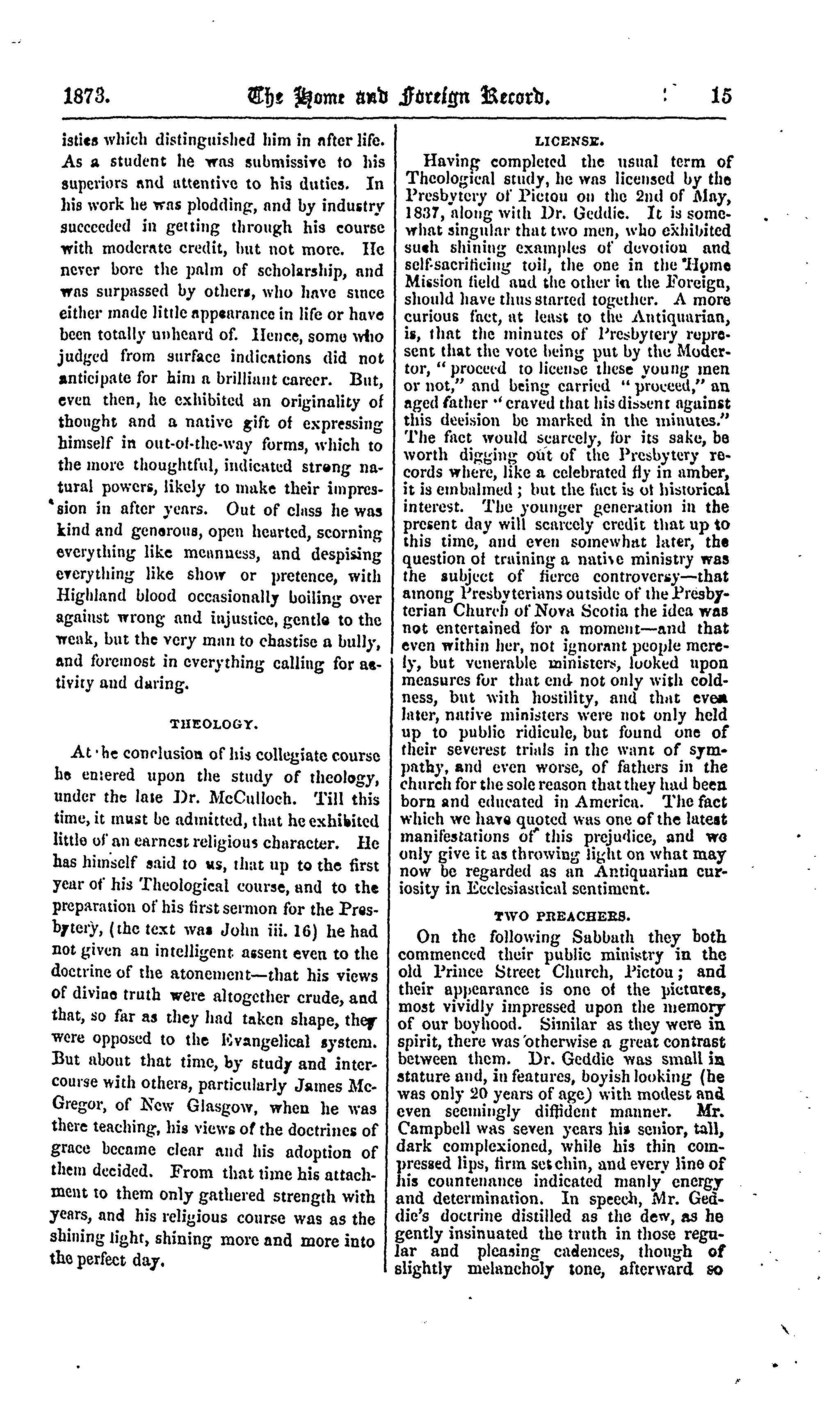 - The home and foreign record of the Presbyterian Church of the Lower Provinces of British North America [Vol. 13] (Jan. 1873)]