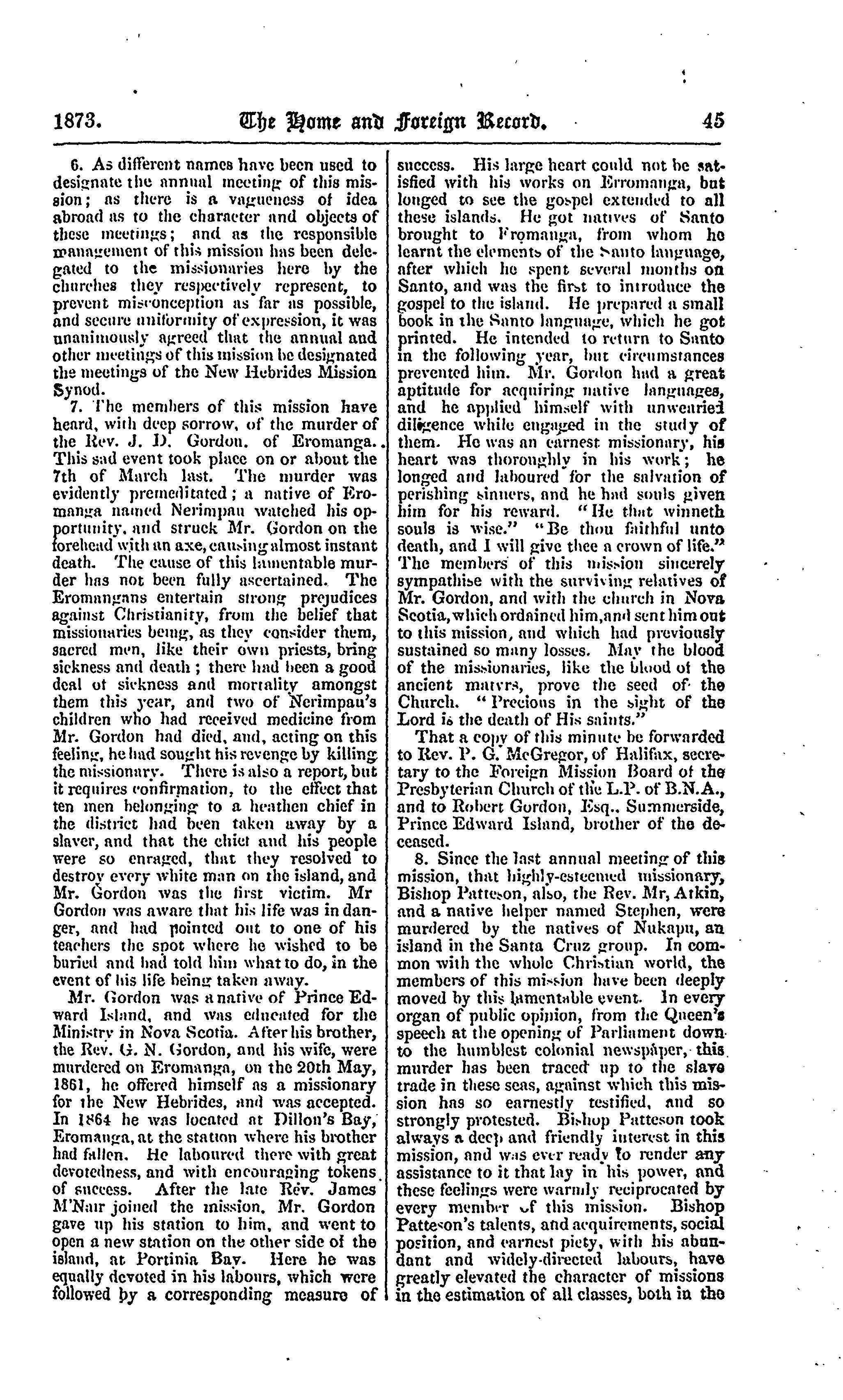 - The home and foreign record of the Presbyterian Church of the Lower Provinces of British North America [Vol. 13] (Feb. 1873)]
