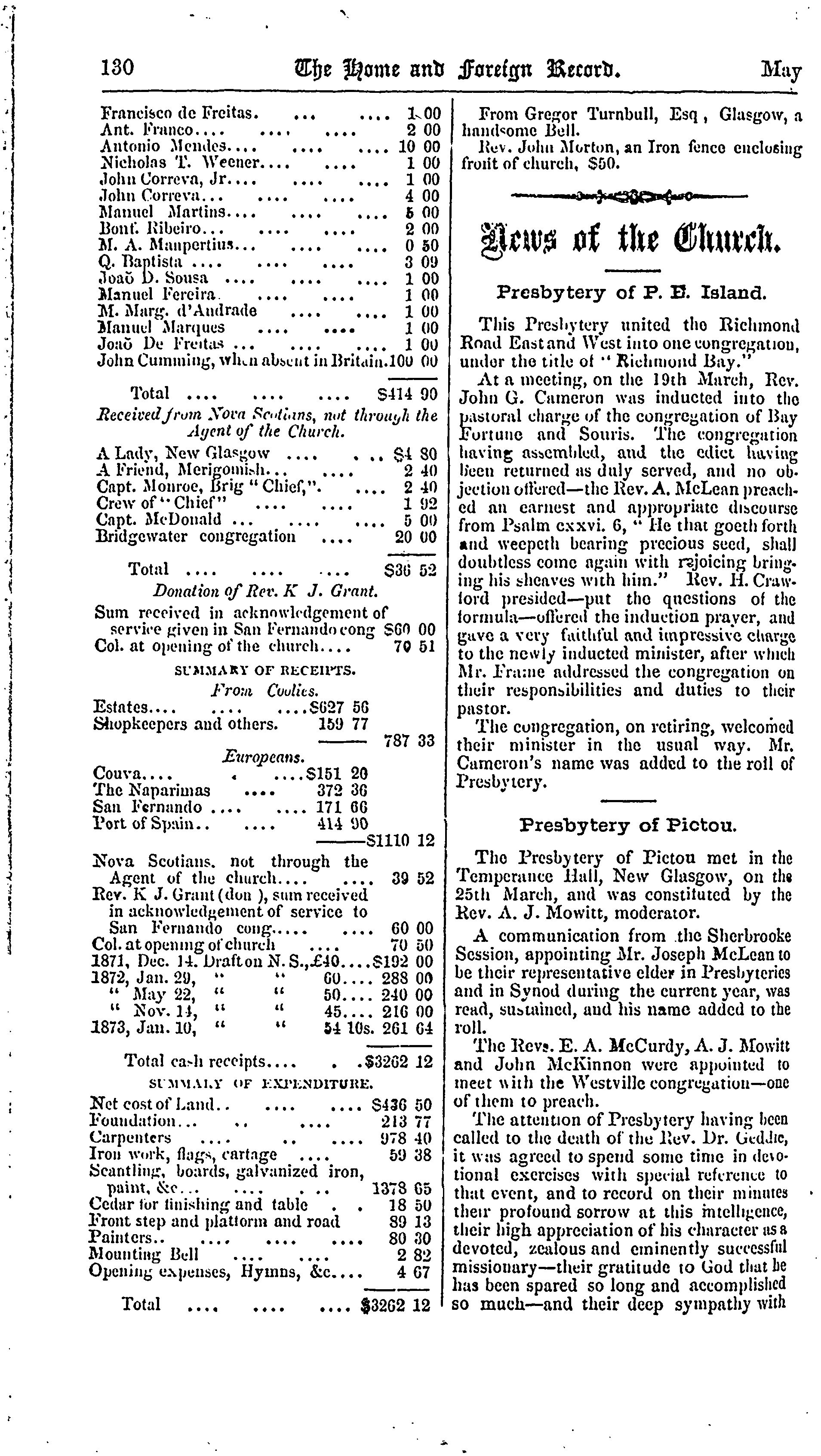 - The home and foreign record of the Presbyterian Church of the Lower Provinces of British North America [Vol. 13] (May 1873)]
