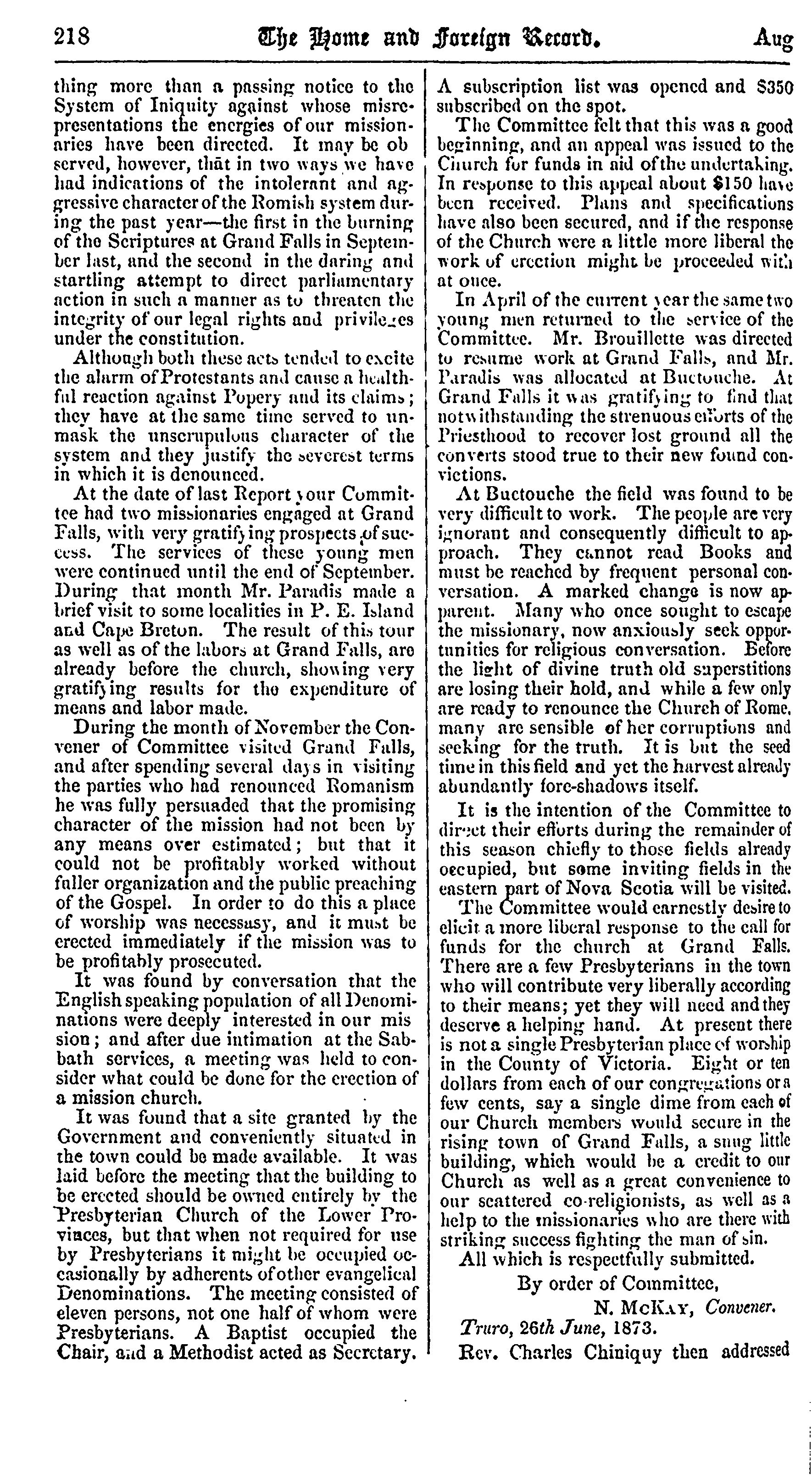 The home and foreign record of the Presbyterian Church of the Lower Provinces of British North America [Vol. 13] (Aug. 1873)]