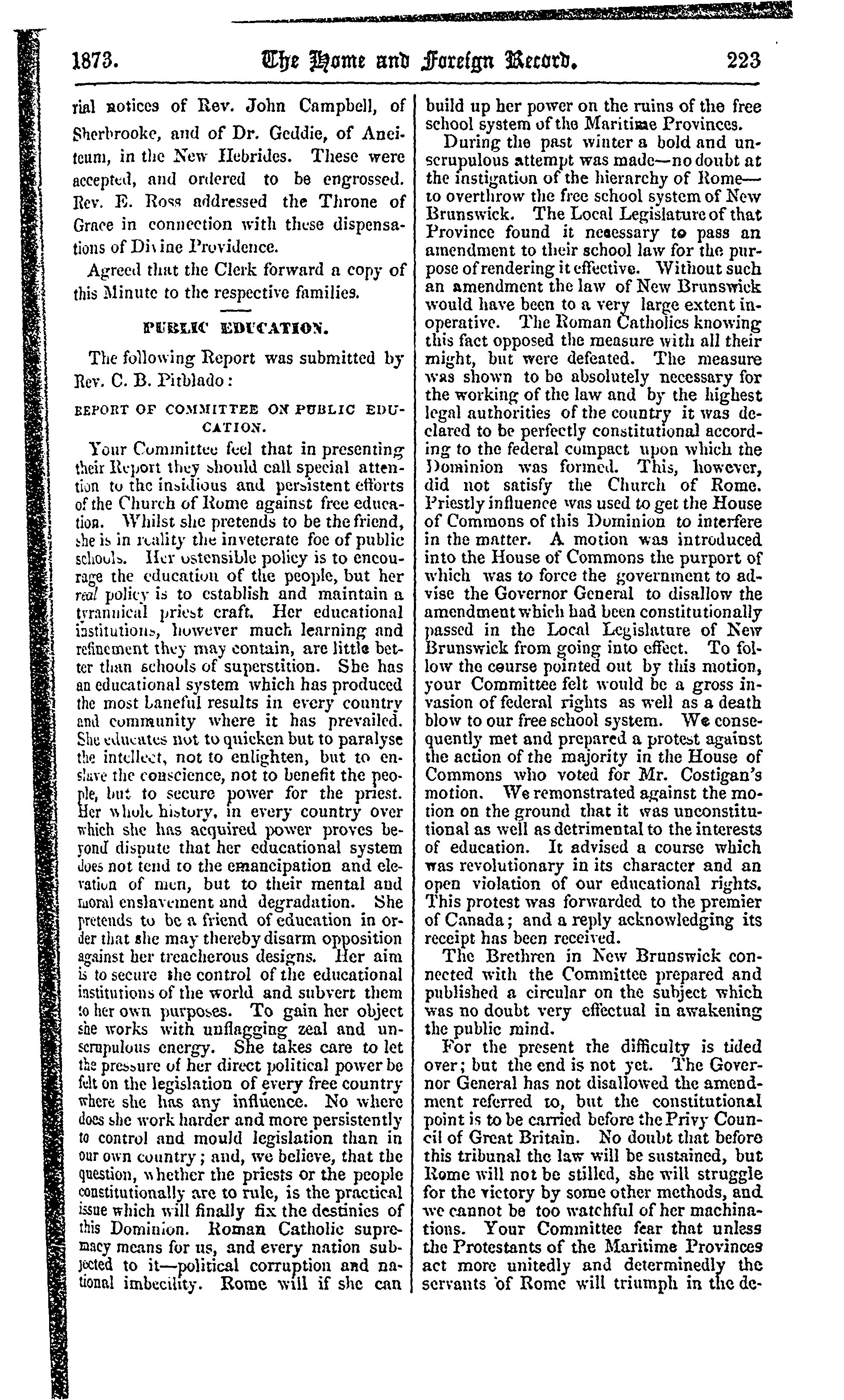 - The home and foreign record of the Presbyterian Church of the Lower Provinces of British North America [Vol. 13] (Aug. 1873)]