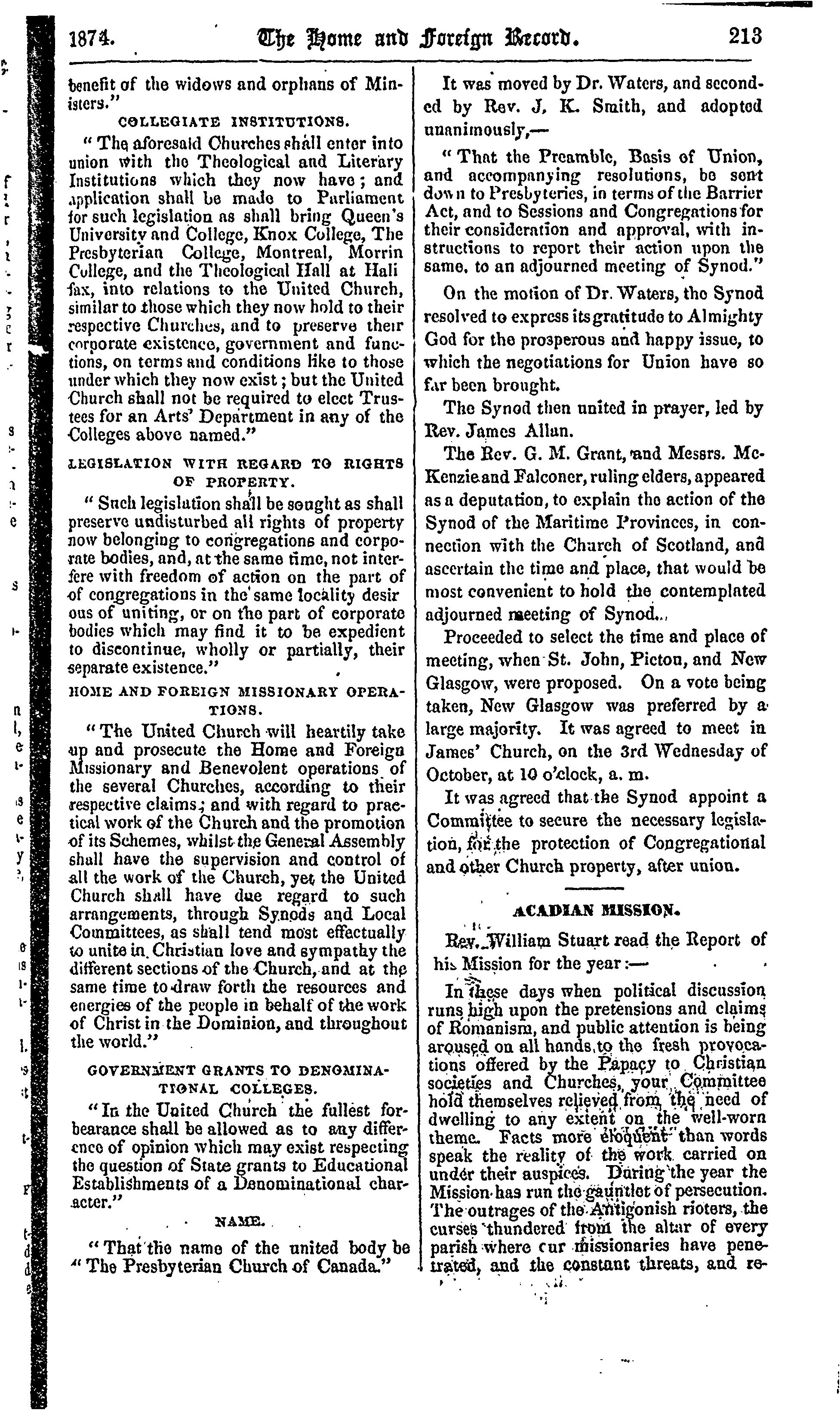 - The home and foreign record of the Presbyterian Church of the Lower Provinces of British North America [Vol. 14] (Aug. 1874)]