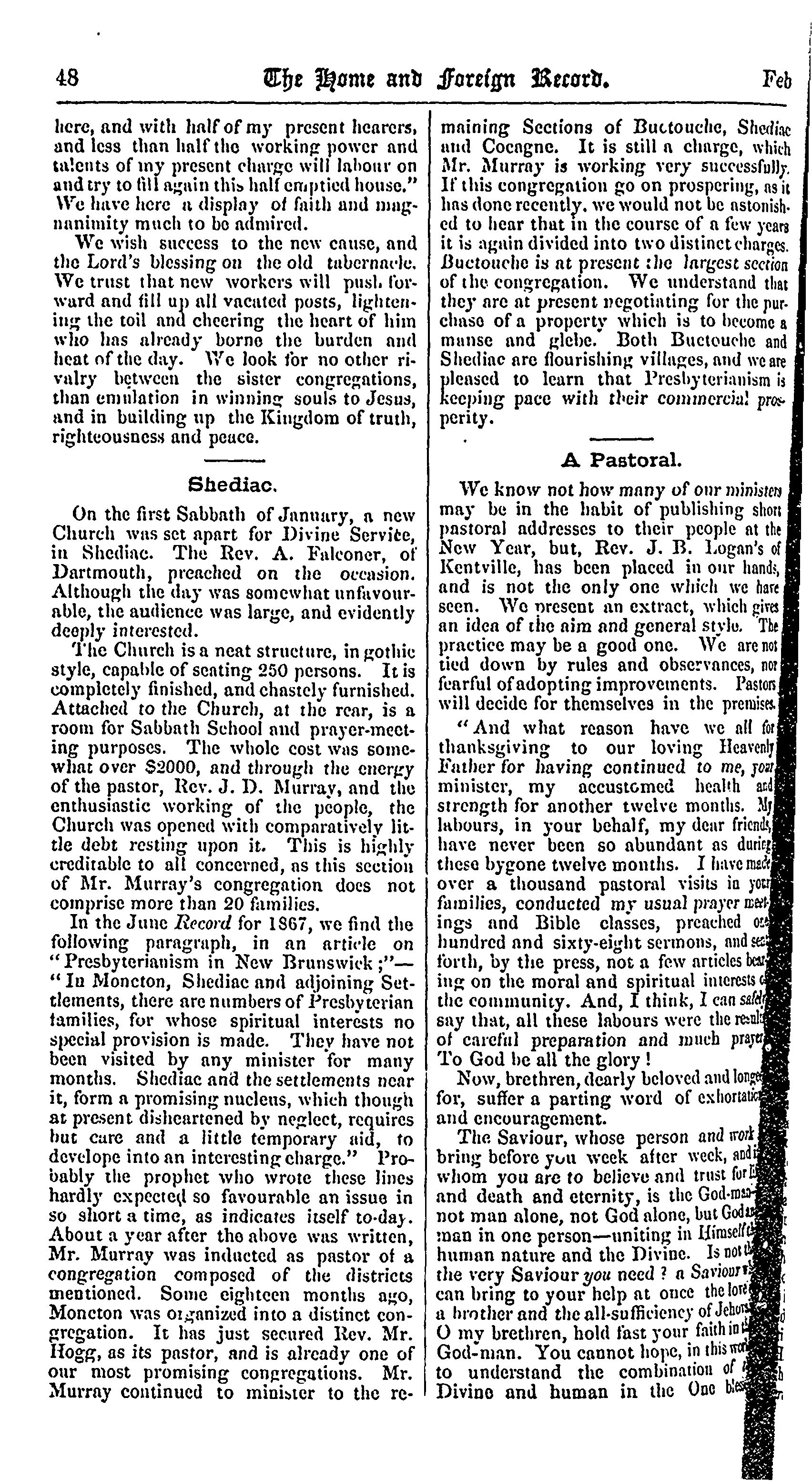 - The home and foreign record of the Presbyterian Church of the Lower Provinces of British North America [Vol. 15] (Feb. 1875)]