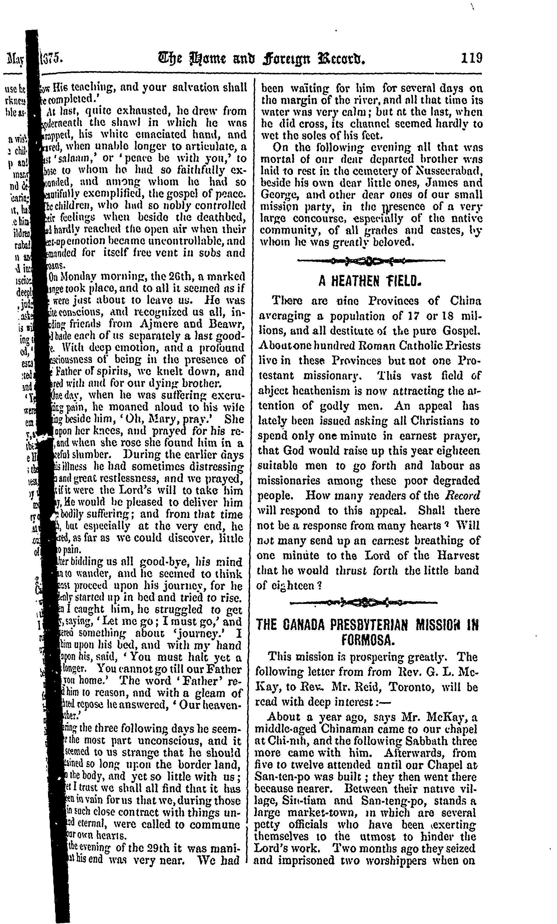 The home and foreign record of the Presbyterian Church of the Lower Provinces of British North America [Vol. 15] (May 1875)]