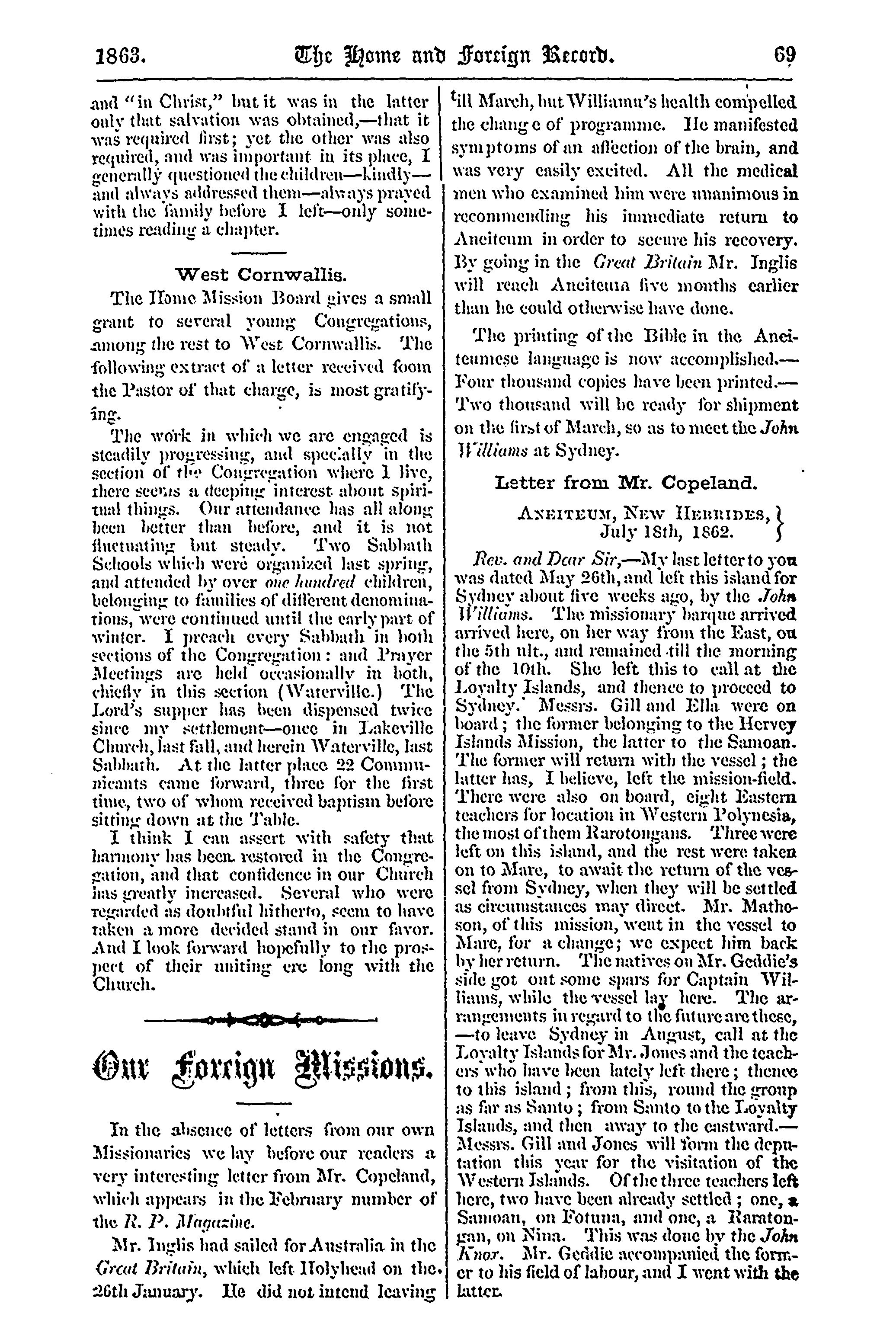 The home and foreign record of the Presbyterian Church of the Lower Provinces of British North America [Vol. 3] (Mar. 1863)]
