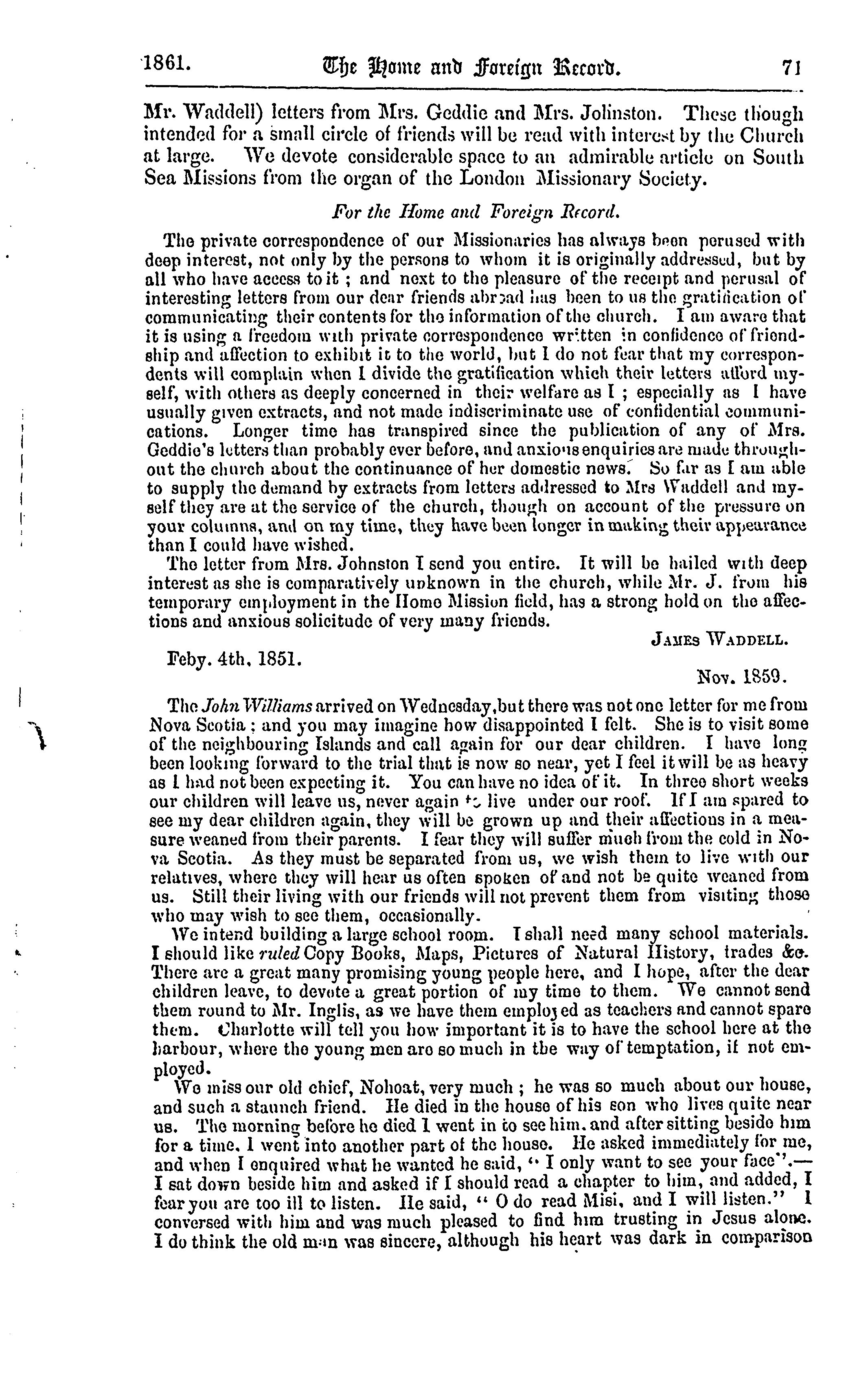 The home and foreign record of the Presbyterian Church of the Lower Provinces of British North America [Vol. 1] (Mar. 1861)]