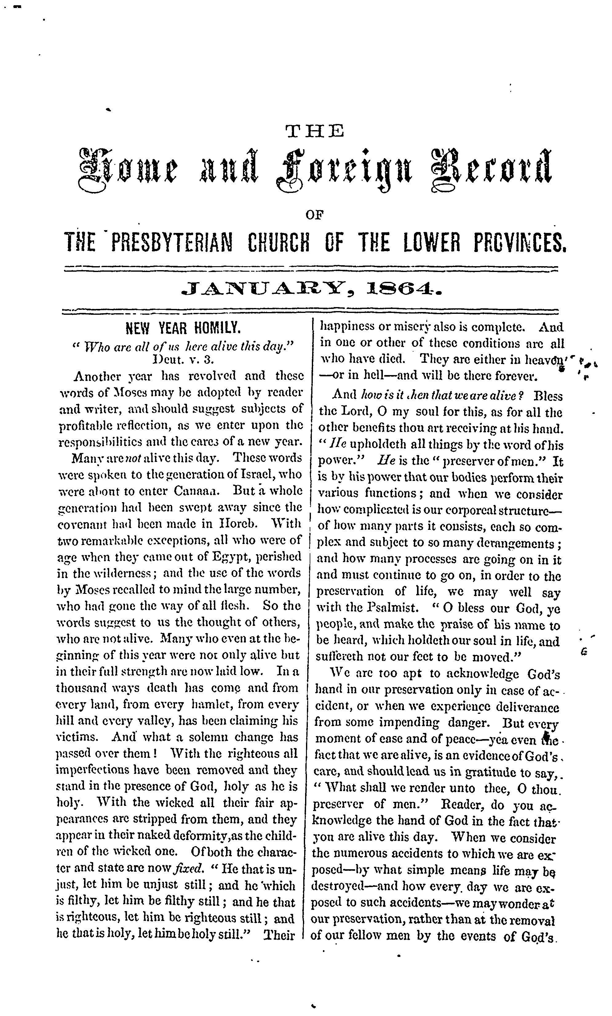 The home and foreign record of the Presbyterian Church of the Lower Provinces of British North America : [Vol. 4] (Jan. 1864)]