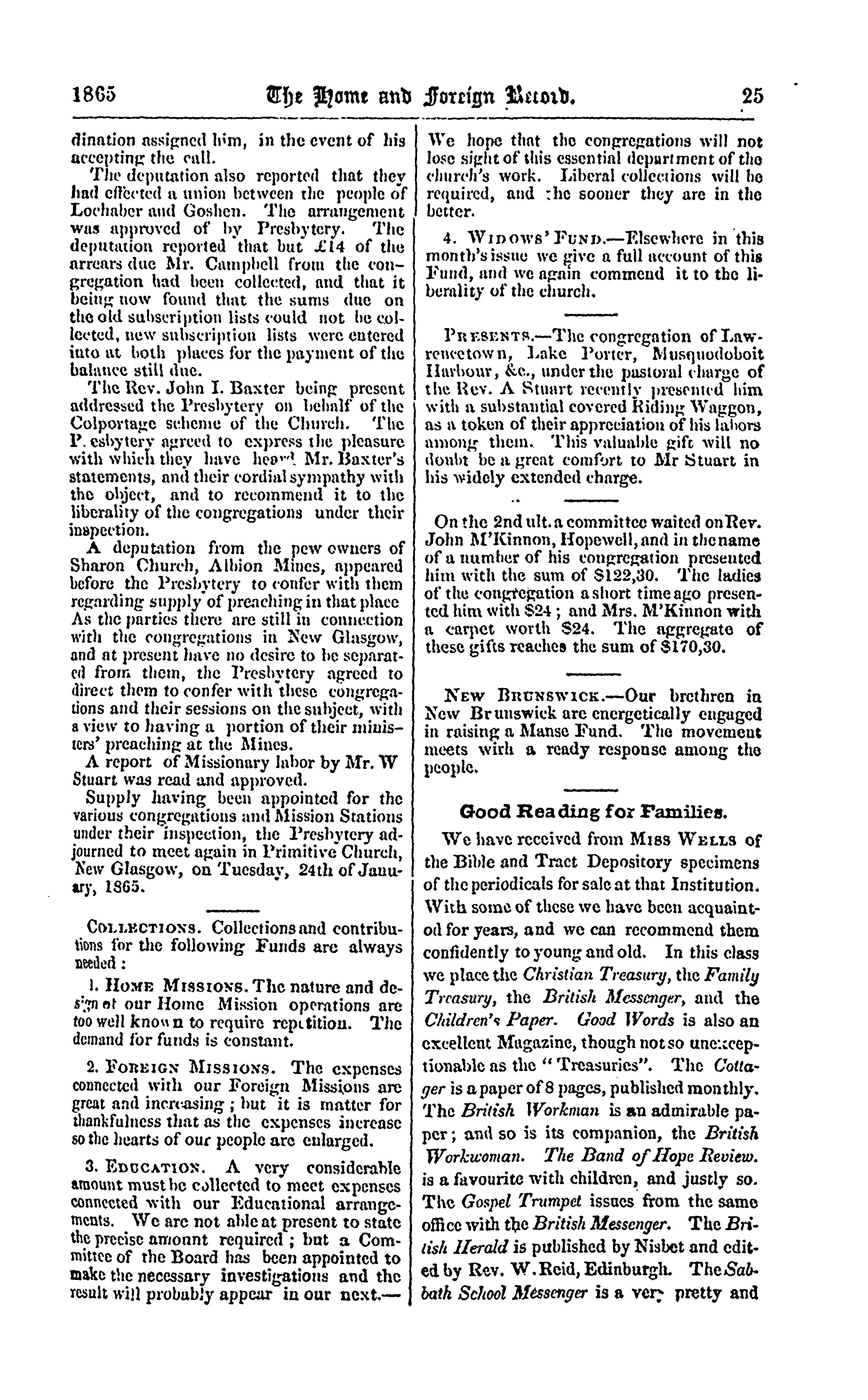 - The home and foreign record of the Presbyterian Church of the Lower Provinces of British North America [Vol. 5] (Jan. 1865)]