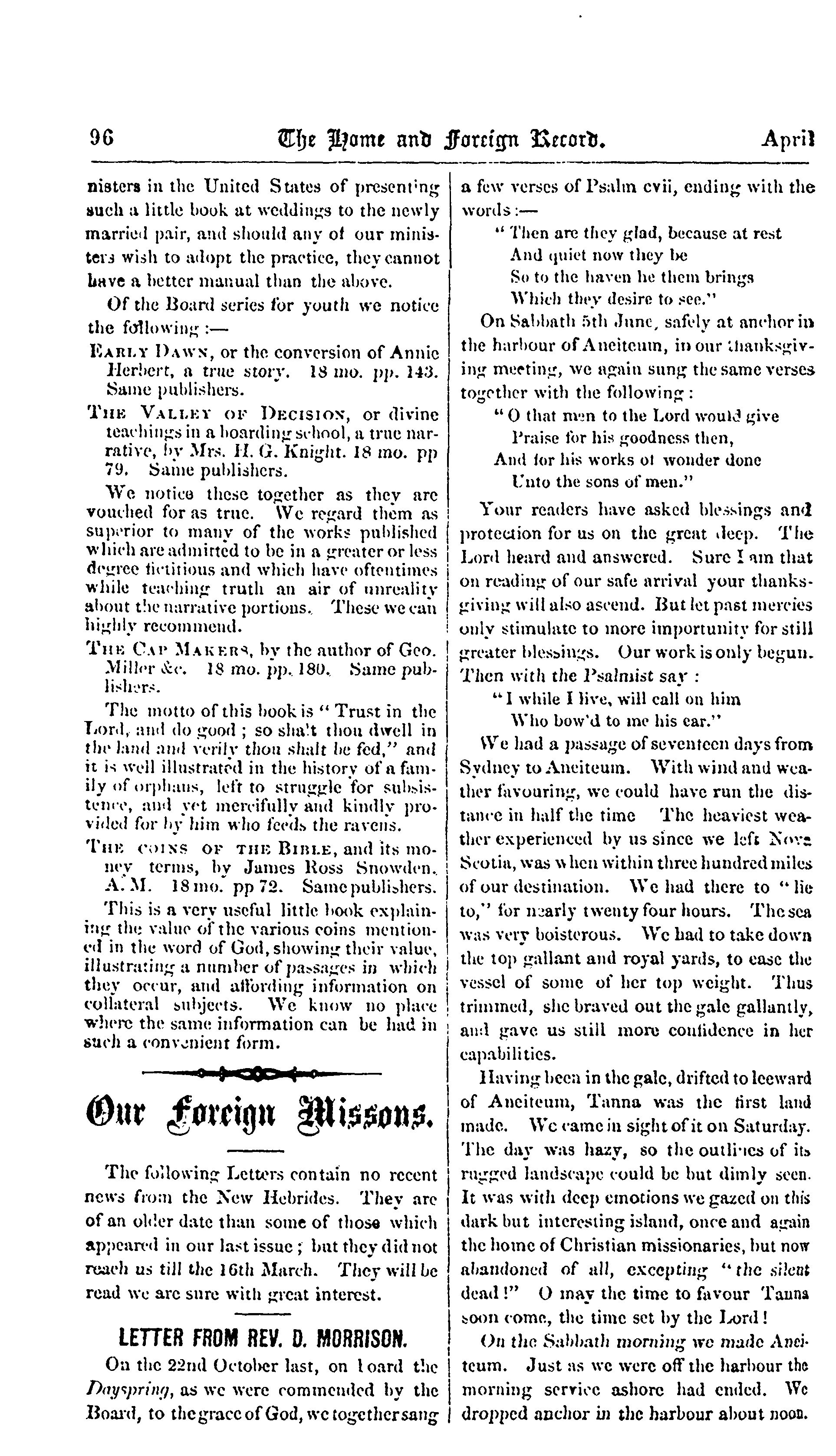 The home and foreign record of the Presbyterian Church of the Lower Provinces of British North America [Vol. 5] (Apr. 1865)]