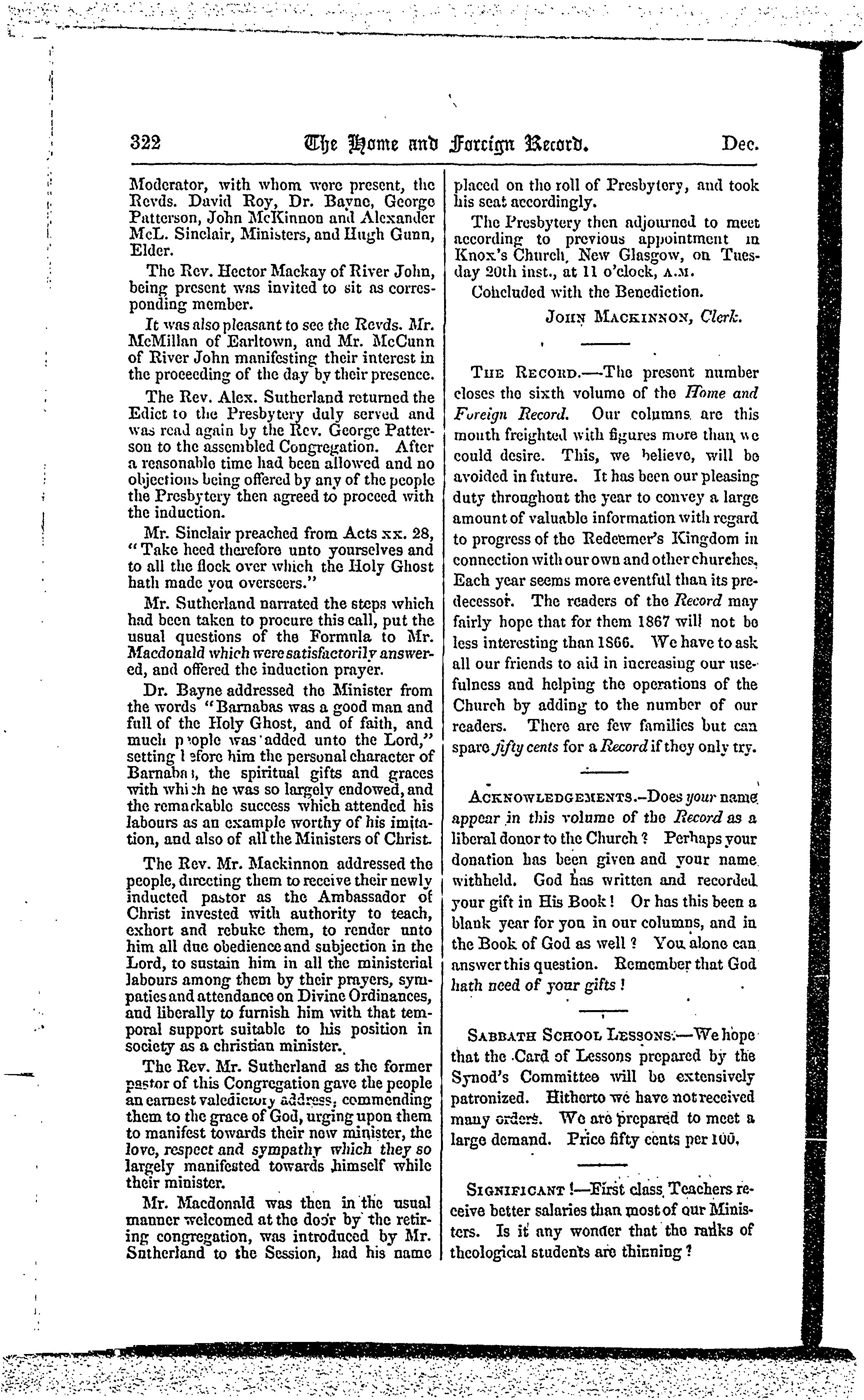 - The home and foreign record of the Presbyterian Church of the Lower Provinces of British North America [Vol. 6] (Dec. 1866)]