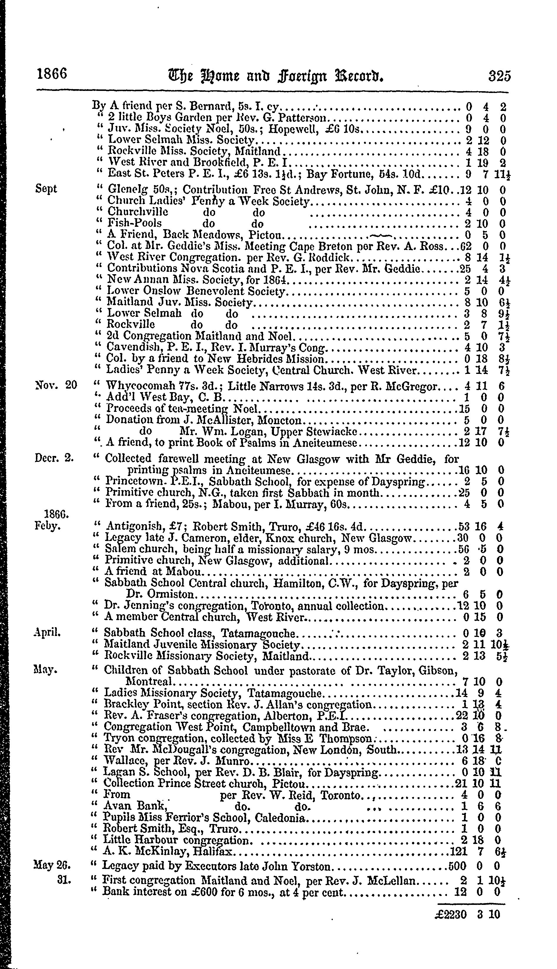 - The home and foreign record of the Presbyterian Church of the Lower Provinces of British North America [Vol. 6] (Dec. 1866)]