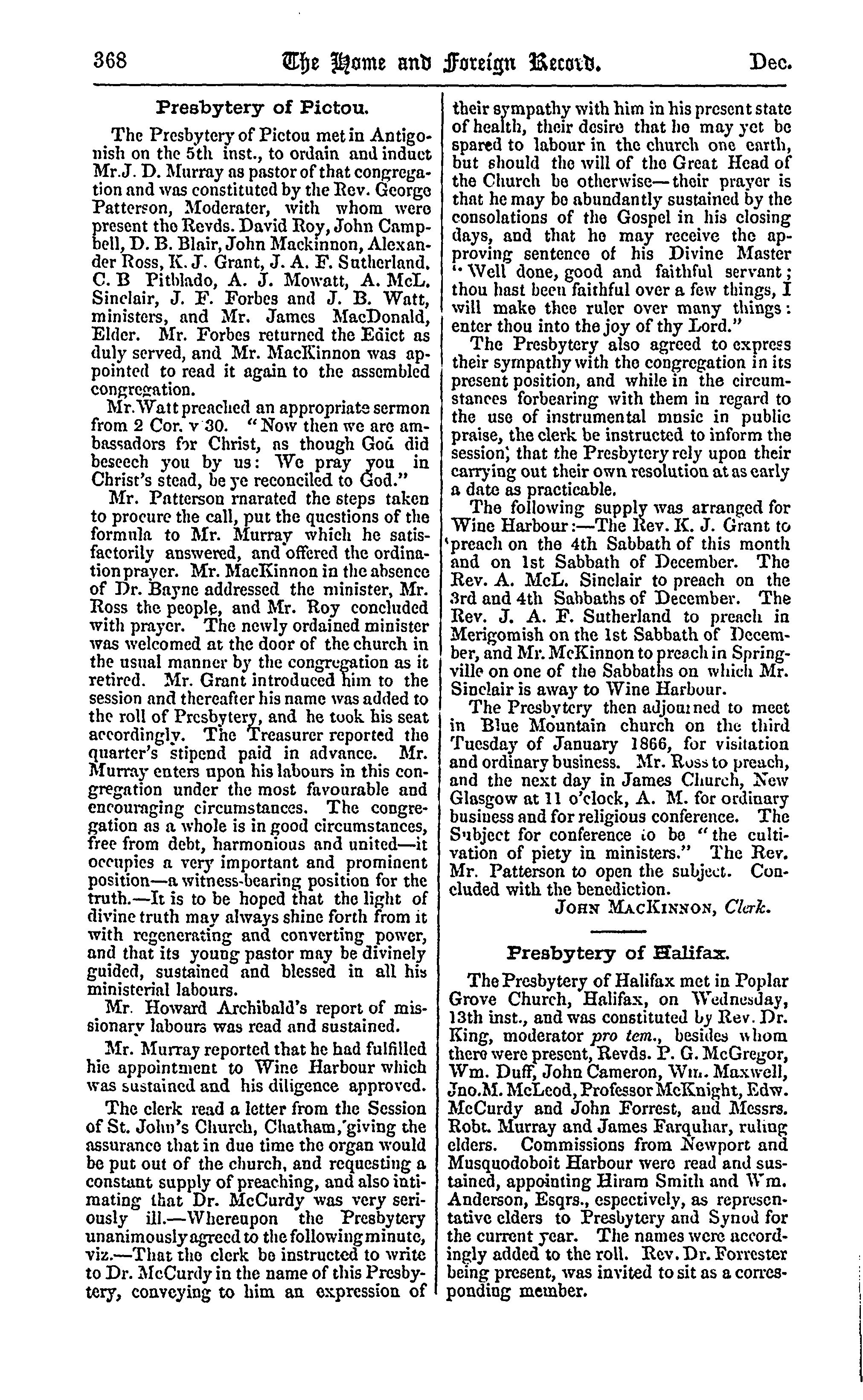 The home and foreign record of the Presbyterian Church of the Lower Provinces of British North America : [Vol. 7] (Dec. 1867)]