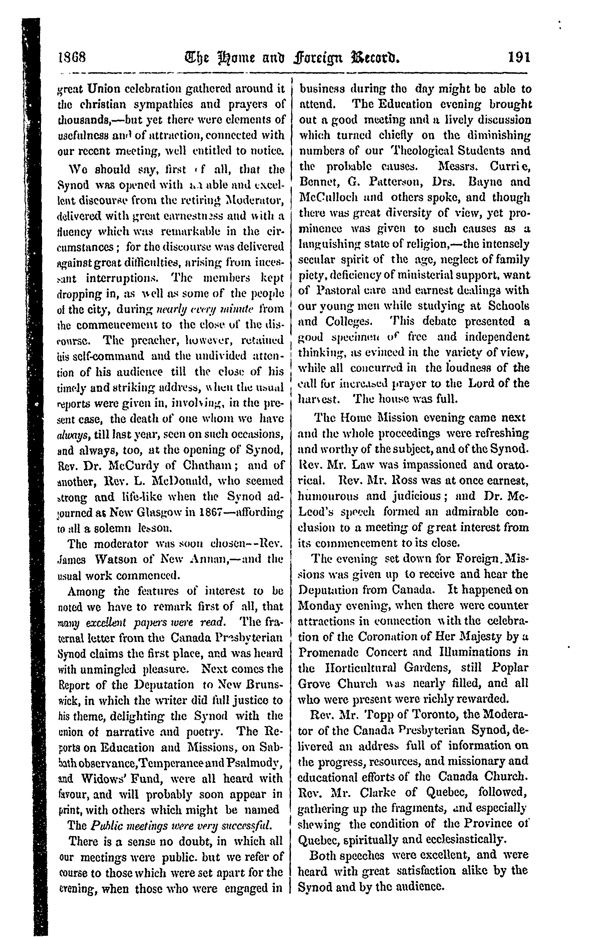 - The home and foreign record of the Presbyterian Church of the Lower Provinces of British North America [Vol. 8] (July 1868)]