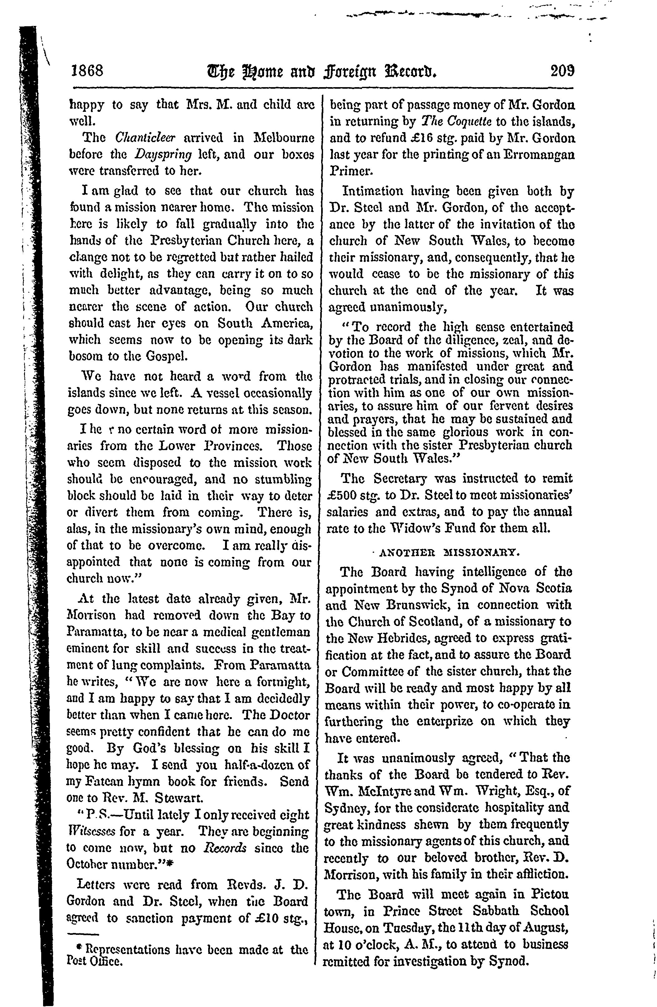 - The home and foreign record of the Presbyterian Church of the Lower Provinces of British North America [Vol. 8] (Aug. 1868)]