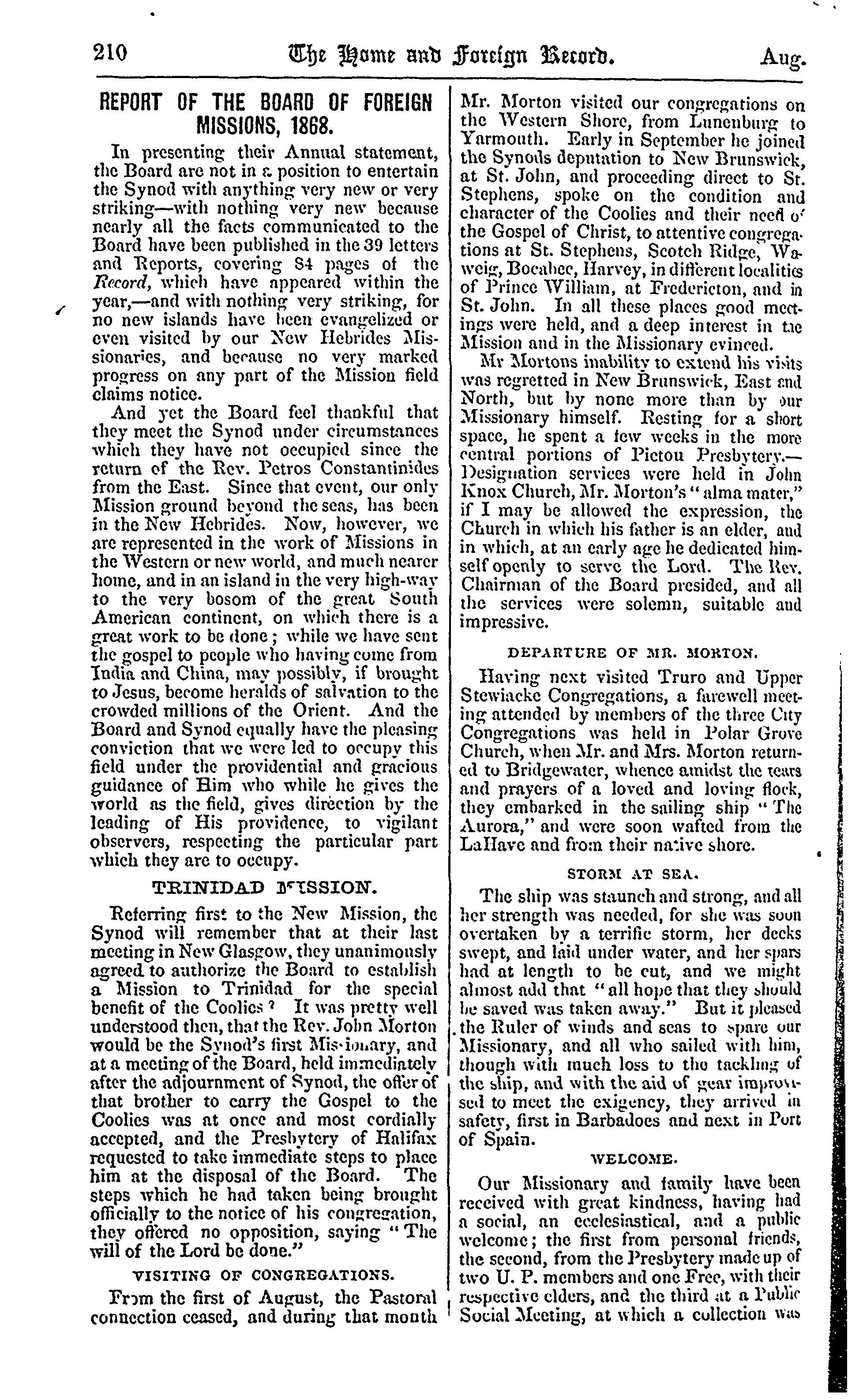 The home and foreign record of the Presbyterian Church of the Lower Provinces of British North America [Vol. 8] (Aug. 1868)]