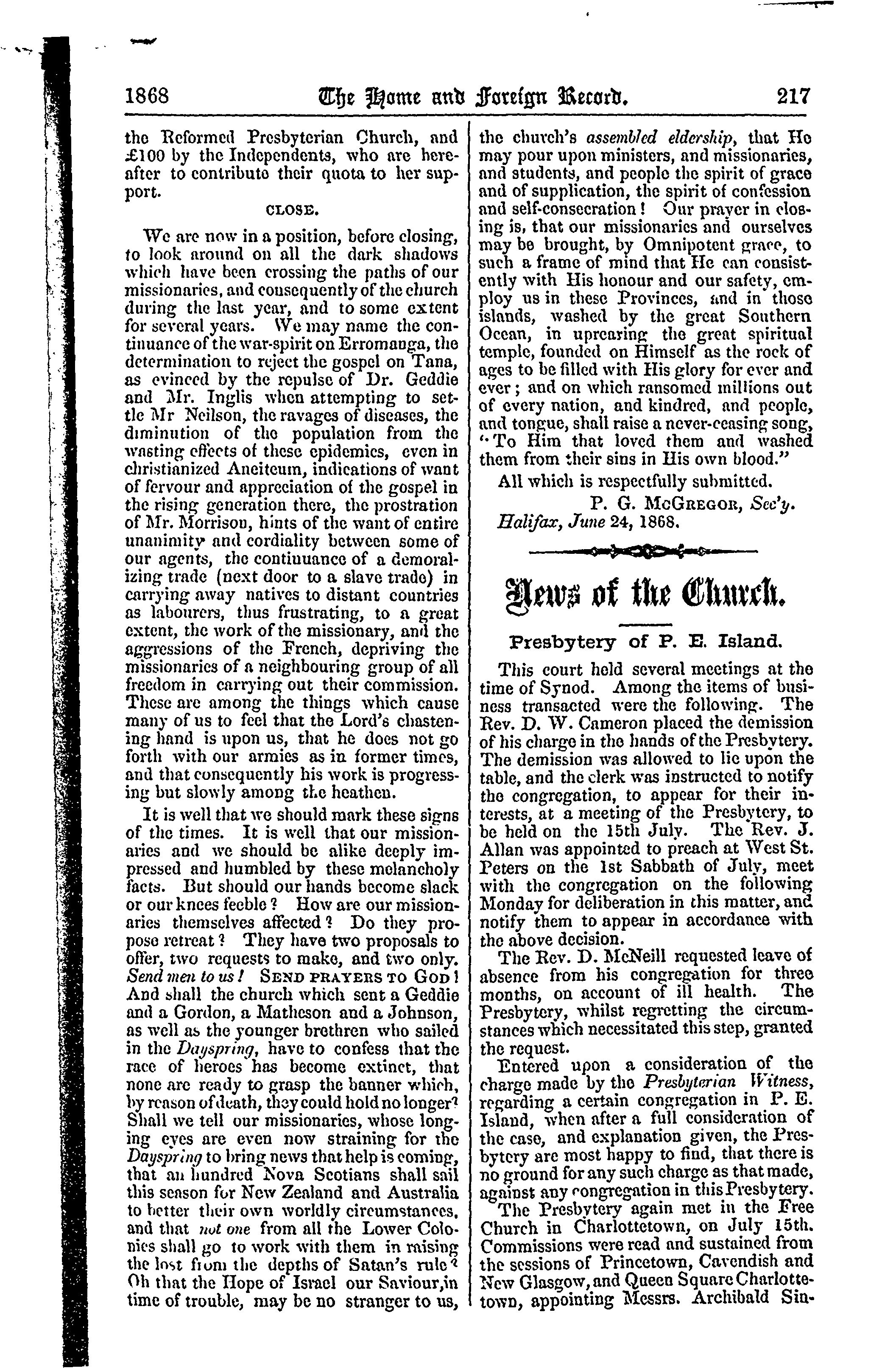 - The home and foreign record of the Presbyterian Church of the Lower Provinces of British North America [Vol. 8] (Aug. 1868)]