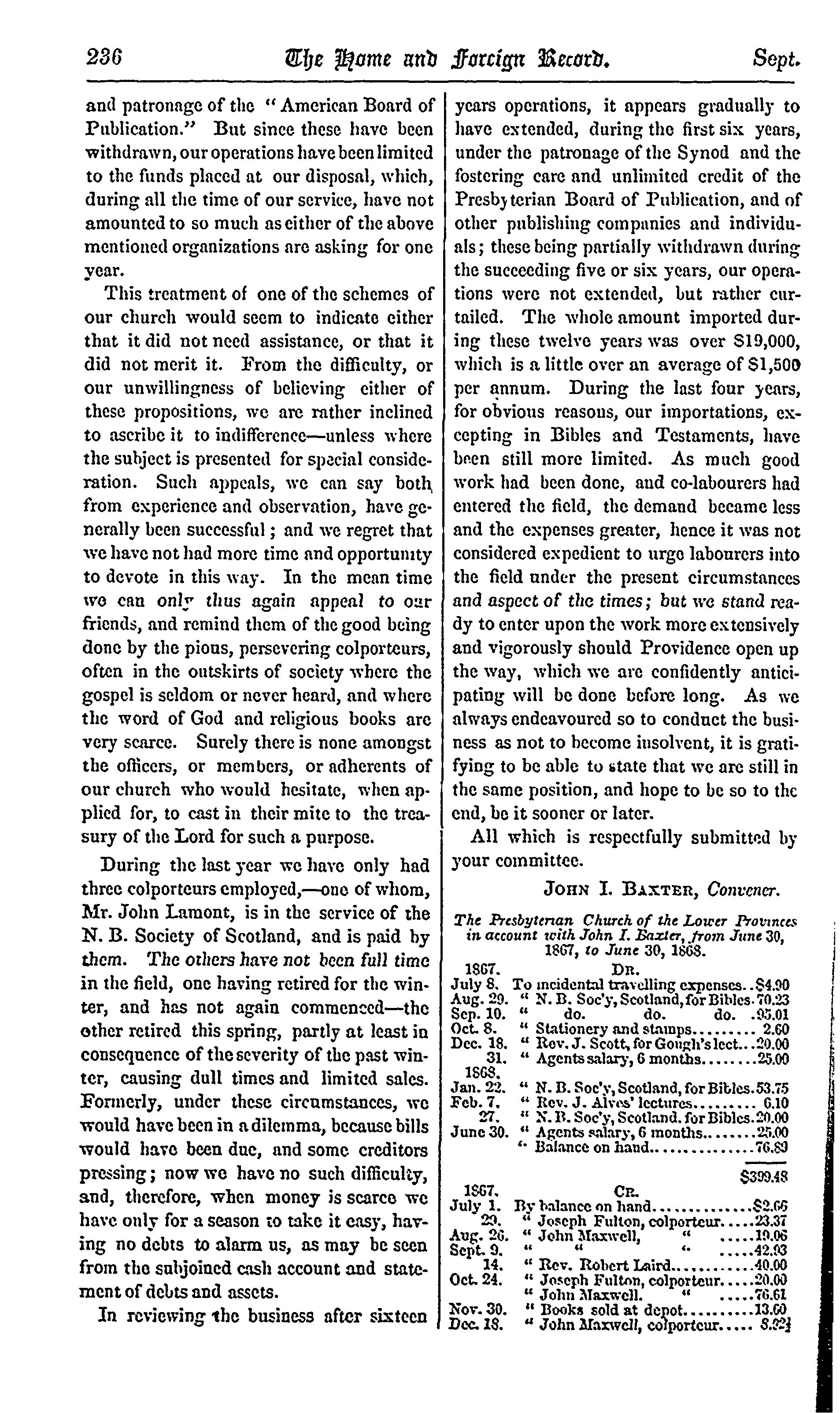 - The home and foreign record of the Presbyterian Church of the Lower Provinces of British North America [Vol. 8] (Sept. 1868)]