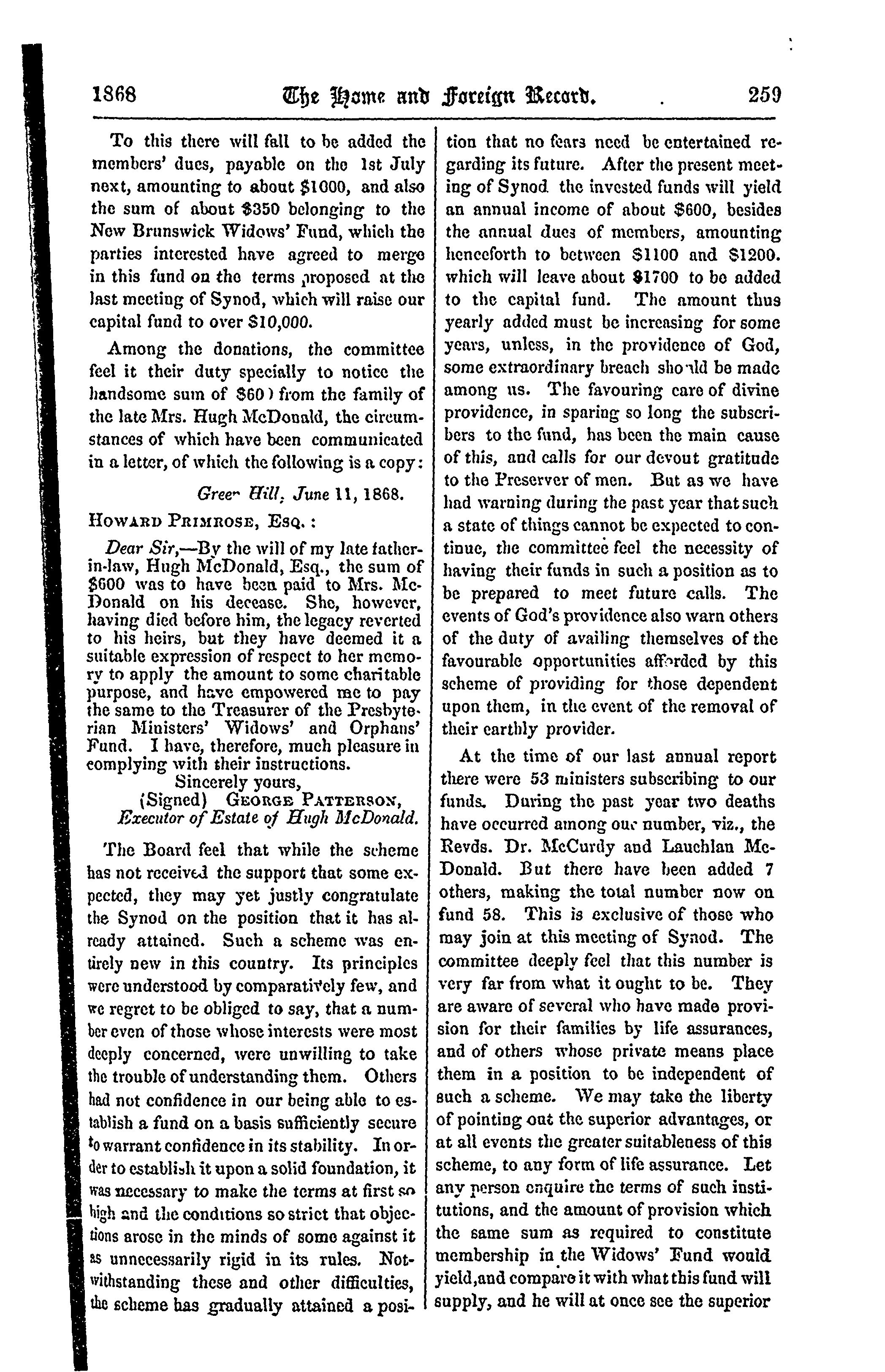 - The home and foreign record of the Presbyterian Church of the Lower Provinces of British North America [Vol. 8] (Oct. 1868)]