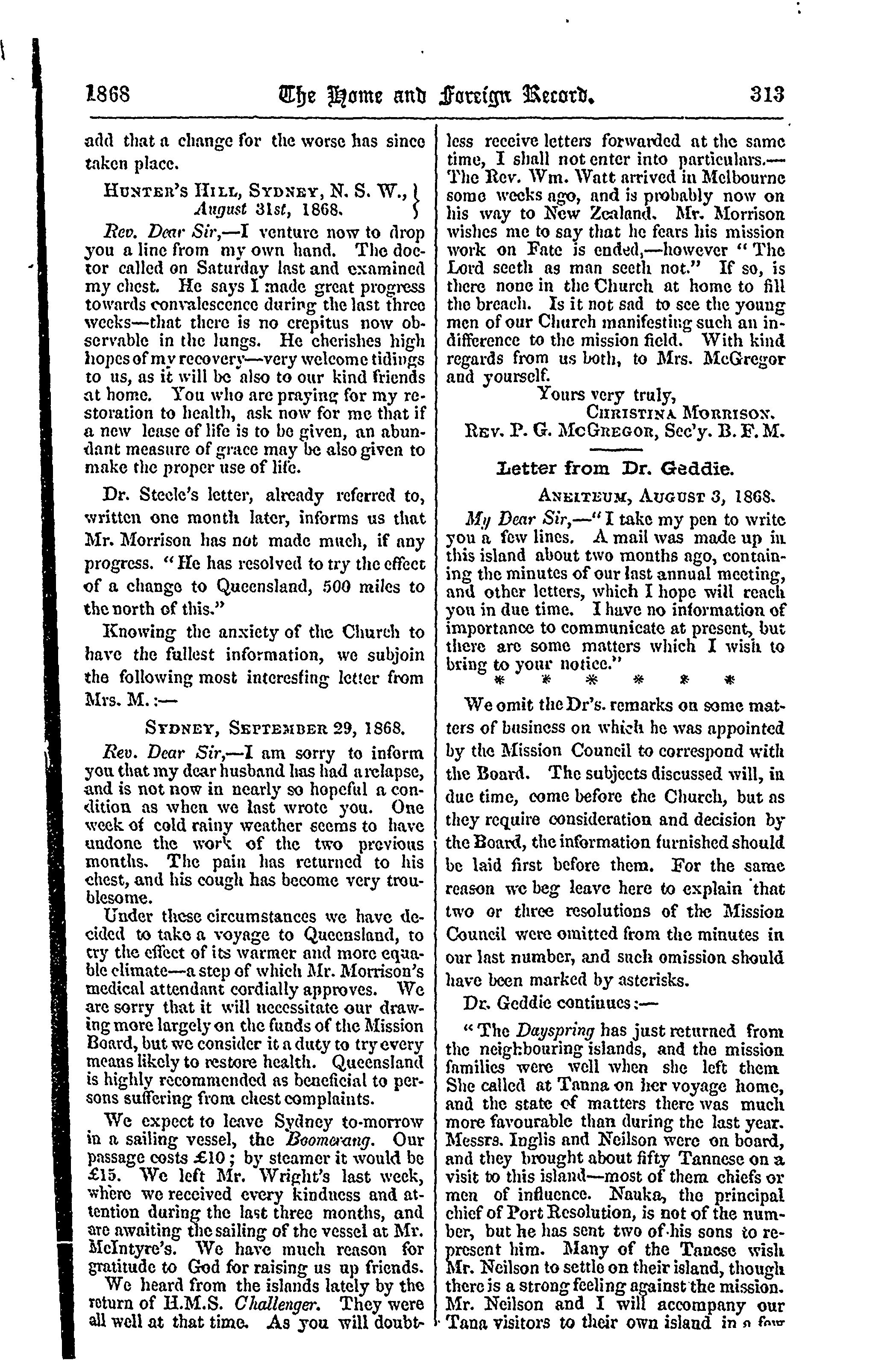 The home and foreign record of the Presbyterian Church of the Lower Provinces of British North America [Vol. 8] (Dec. 1868)]