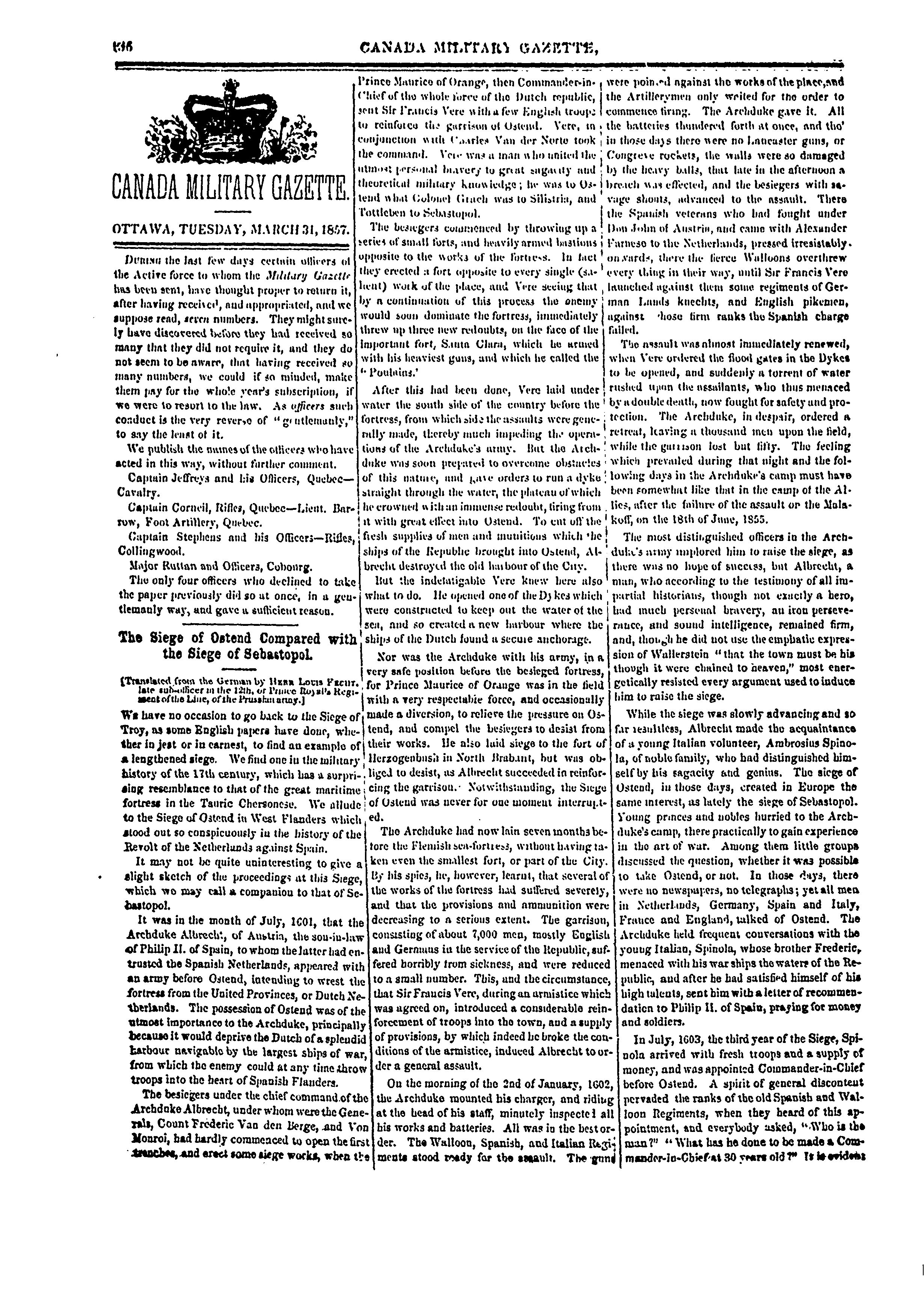 - Canada military gazette, sporting and literary chronicle [Vol. 1, no. 9 (Mar. 31, 1857)]