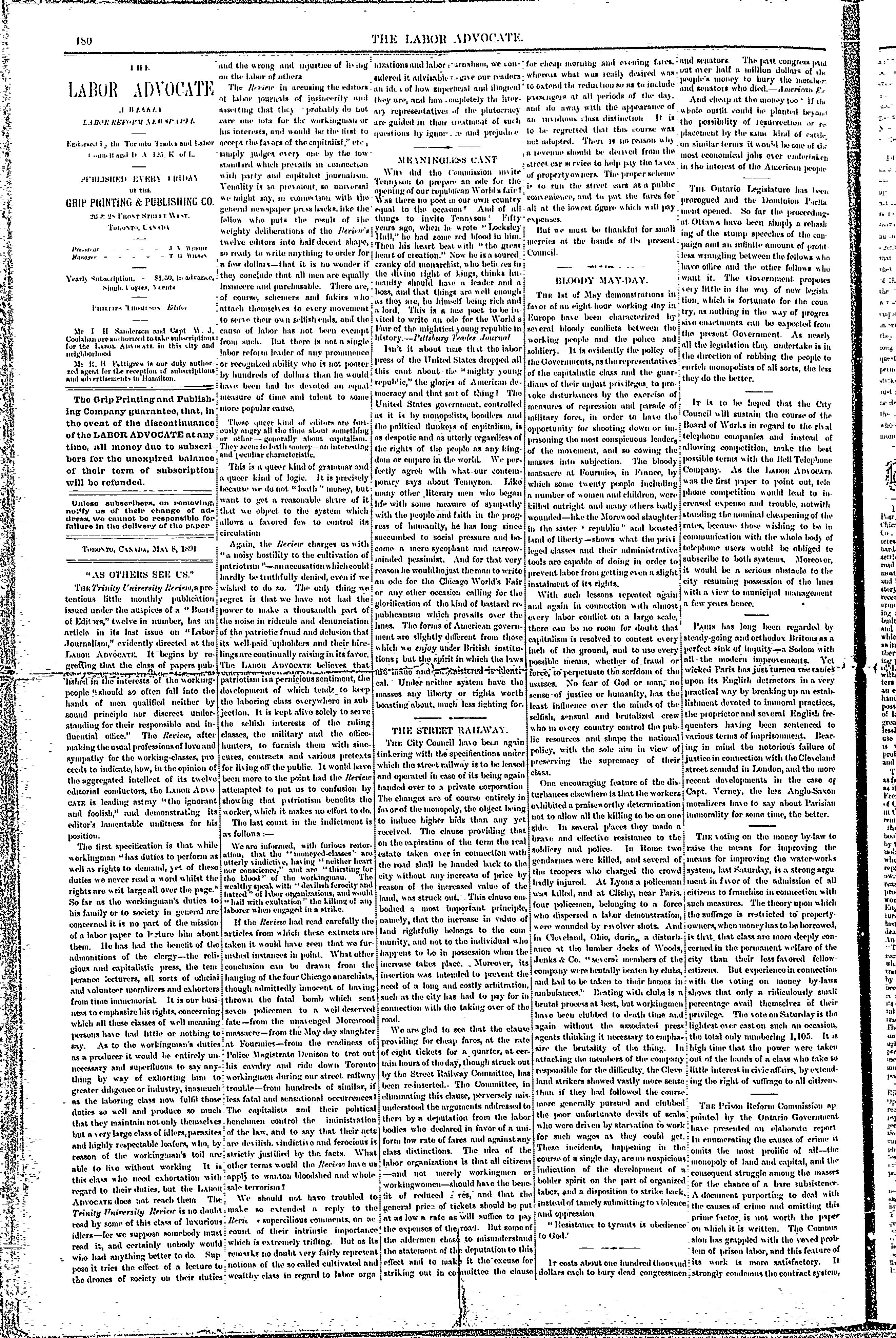 The labor advocate : Vol. 1, no. 23 (May 8, 1891)