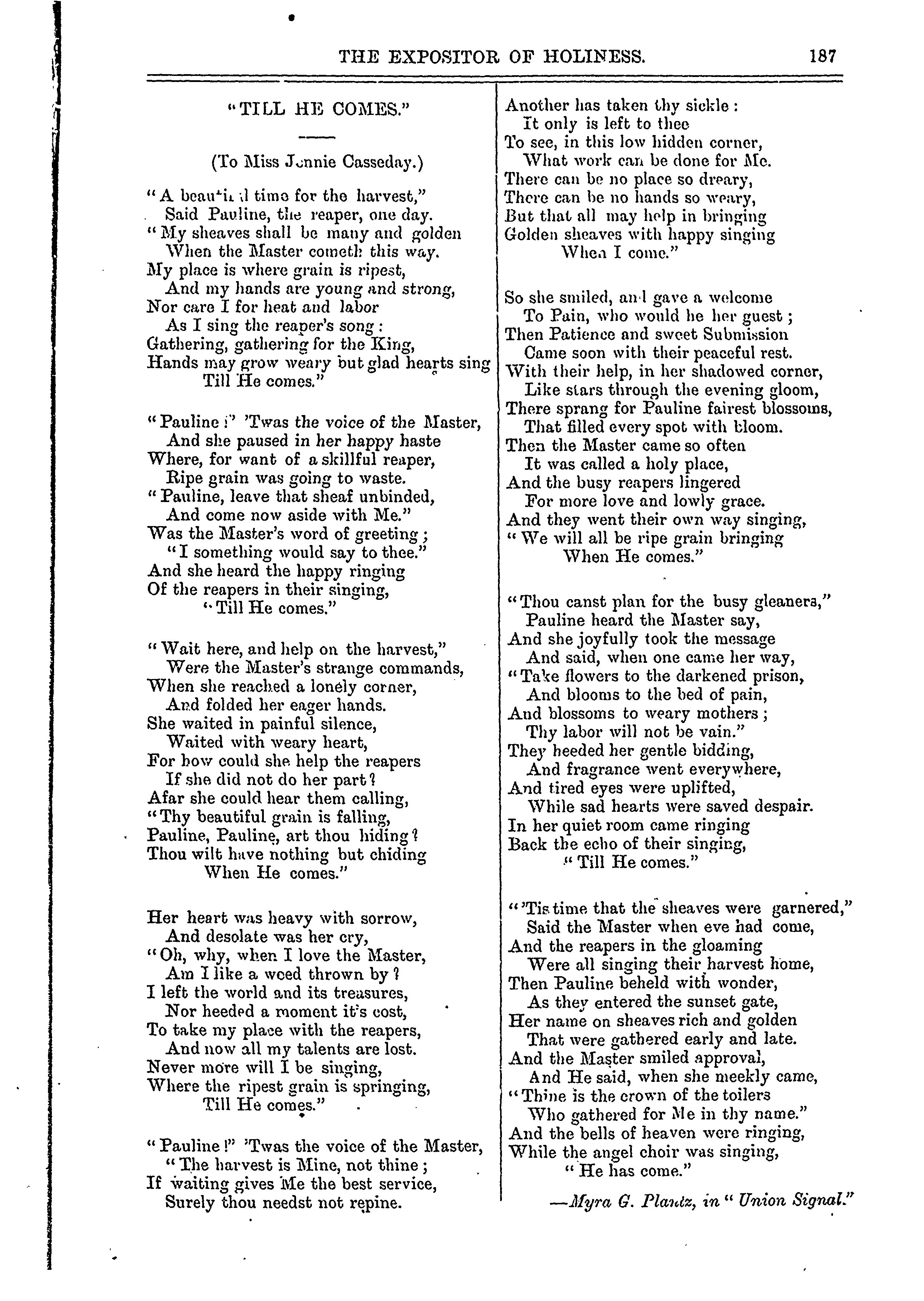Toronto : Pub. under the auspices of the Canada Holiness Association, [1892]; 33 images avec recherche en texte intégral