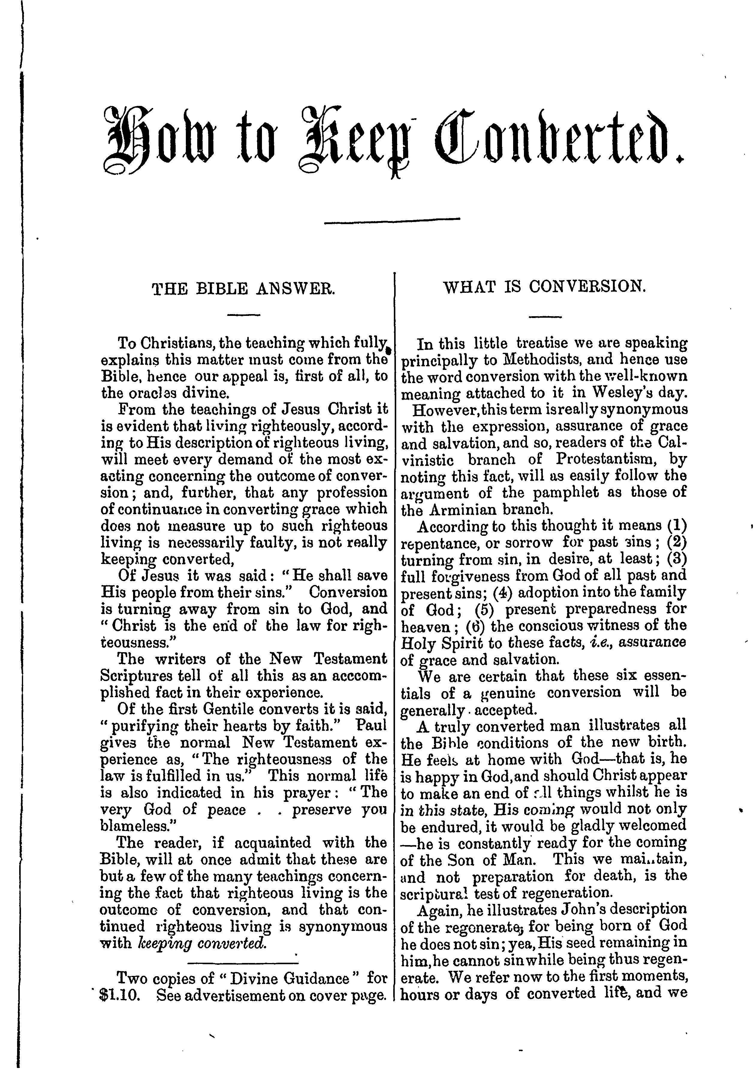 Toronto : Pub. under the auspices of the Canada Holiness Association, [1892]