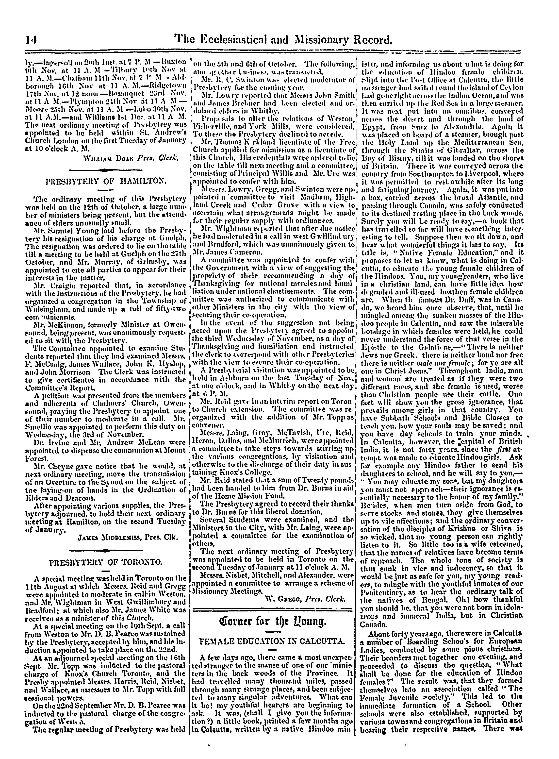 - Presbyterian Church in Canada Archives, Toronto.