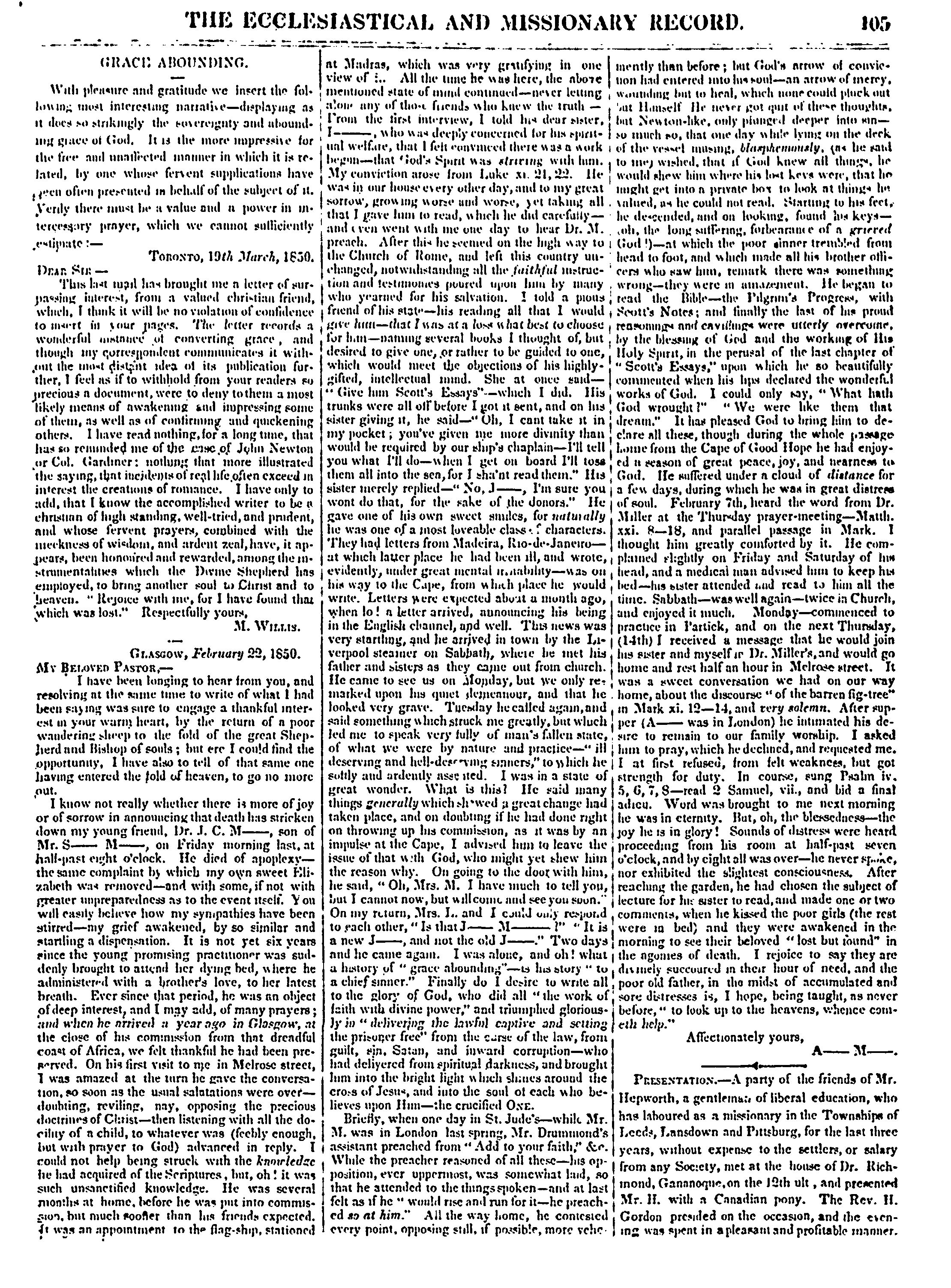 - The ecclesiastical and missionary record for the Presbyterian Church of Canada [Vol. 6, no. 7 (May 1850)]