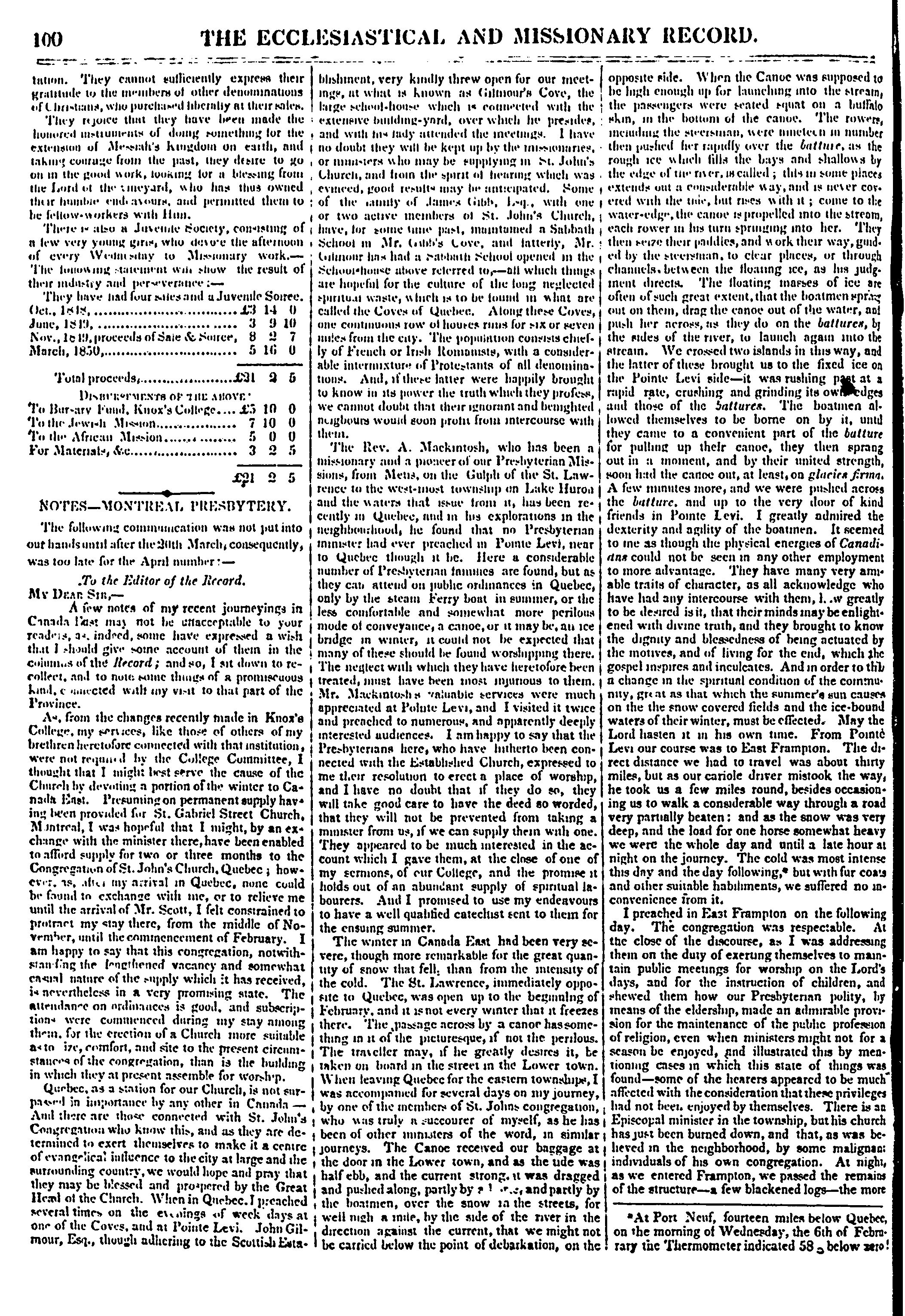 - The ecclesiastical and missionary record for the Presbyterian Church of Canada [Vol. 6, no. 7 (May 1850)]