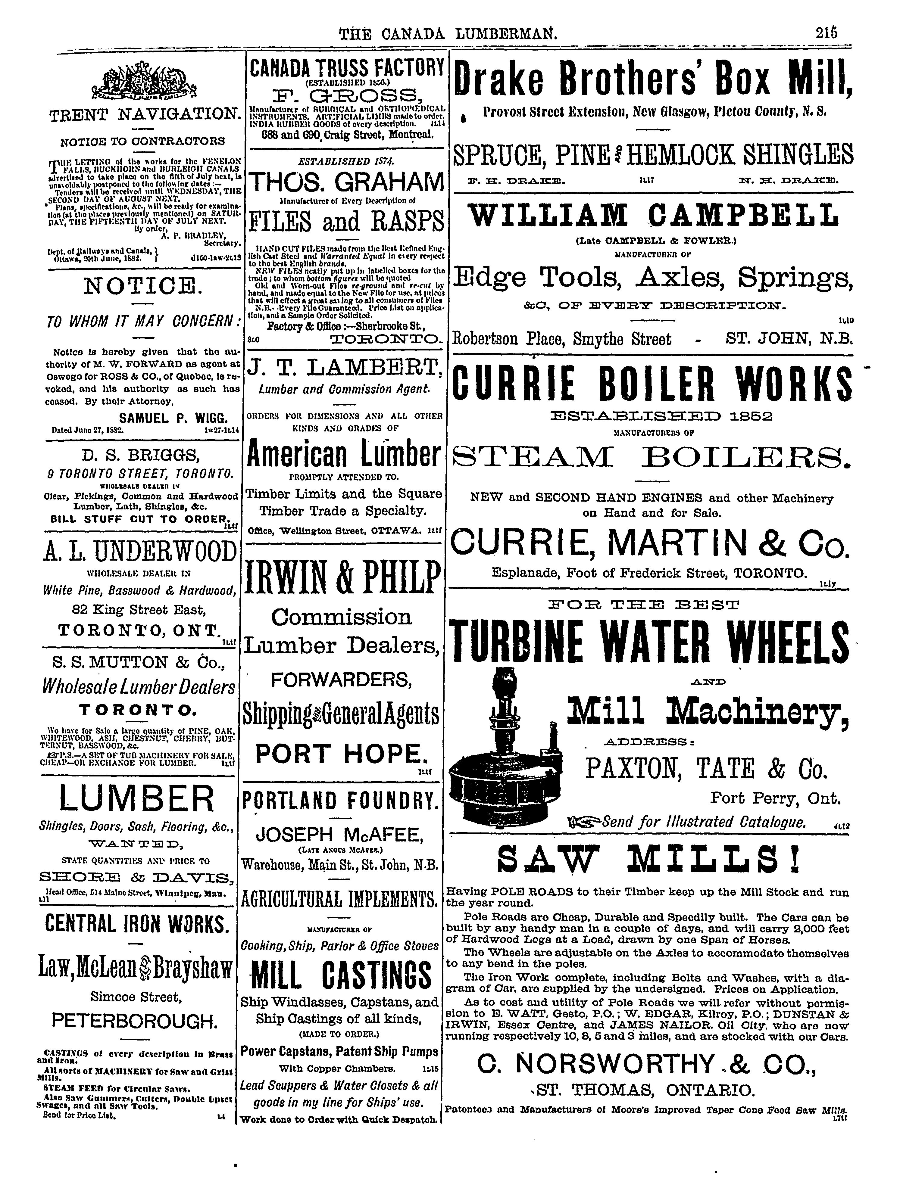 - The Canada lumberman and millers', manufacturer's and miners gazette [Vol. 2, no. 14 (July 15, 1882)]